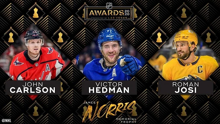 Джеймс Норрис Трофи - приз лучшему защитнику регулярного чемпионата НХЛ. Победитель выбирается по итогам голосования среди членов Ассоциации журналистов НХЛ. 15 июля 2020 года НХЛ объявила претендентов на Норрис Трофи. В этом году на приз номинированы Джон Карлсон, Виктор Хедман и Роман Йоси.