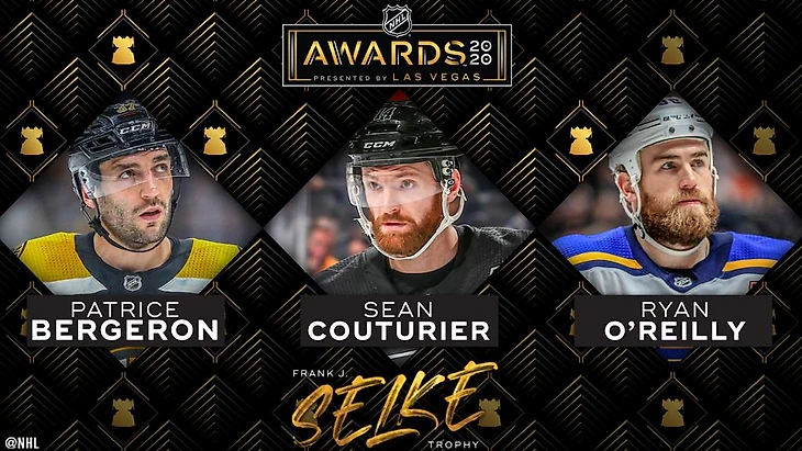 Фрэнк Дж. Селки Трофи - приз, вручаемый лучшему нападающему оборонительного плана по итогам регулярного чемпионата НХЛ. Победитель определяется путём голосования среди членов Ассоциации журналистов НХЛ. 20 июля 2020 года НХЛ объявила претендентов на Леди Бинг Трофи. В этом году на приз номинированы Патрис Бержерон, Шон Кутюрье и Райан О'Райлли.