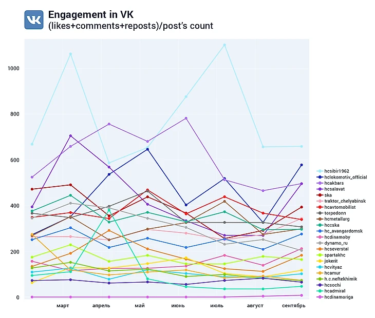 В начале весны хоккей из-за пандемии прервался, но 2 сентября команды вновь вышли на лёд и мы опять решили посмотреть и опубликовать общие данные о том, что происходило в соц медиа команд за время затянувшего межсезонья.