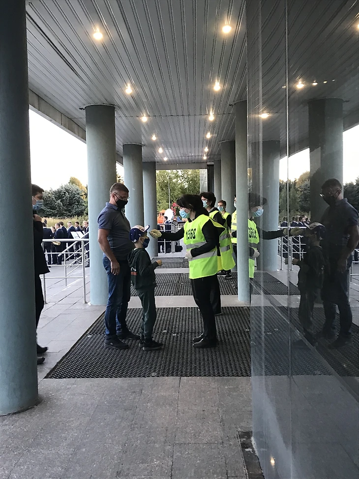 Атмосфера внутри дворца: без масок не пускают, температуру измеряют, антисептики в фойе через каждый метр