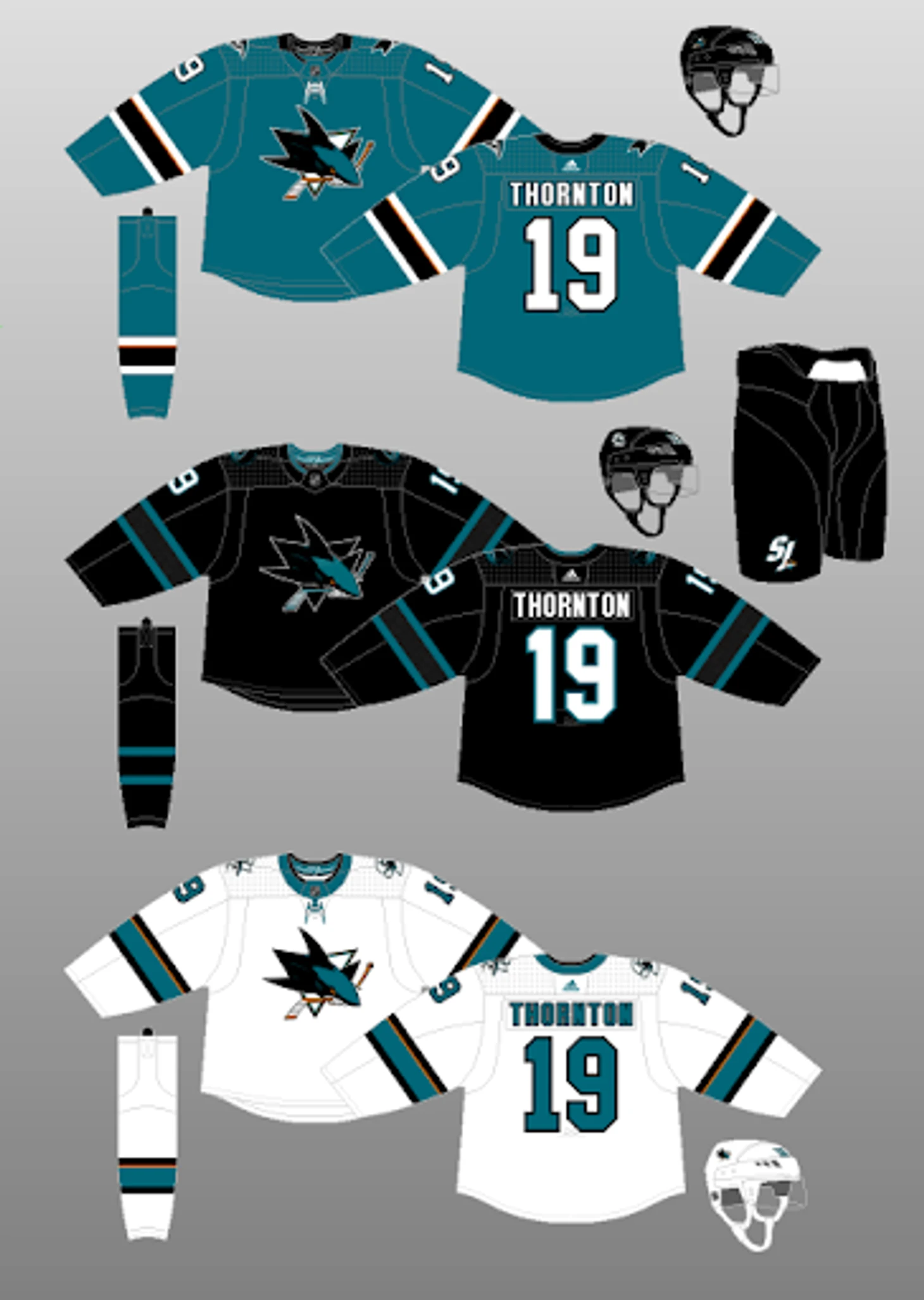 Форма, без сомнений, получилась красивой. Четко прослеживаются морские тона, эмблема стала более заметной, а краски смотрятся более насыщенно по сравнению с предыдущим сезоном. Особенно болельщикам понравился альтернативный чёрный комплект, за него «Сочи» отдельный респект. Но в комментариях к презентации у многих фанов сразу же возник резонный вопрос – «не плагиат ли это?». Если следите за миром хоккея, то увидеть сходство будет достаточно просто. «Сочи» определенно, как это модно сейчас говорить, «вдохновился» формой «Сан-Хосе Шаркс». Смотрите сами – вот черновой вариант джерси «акул» на этот сезон.