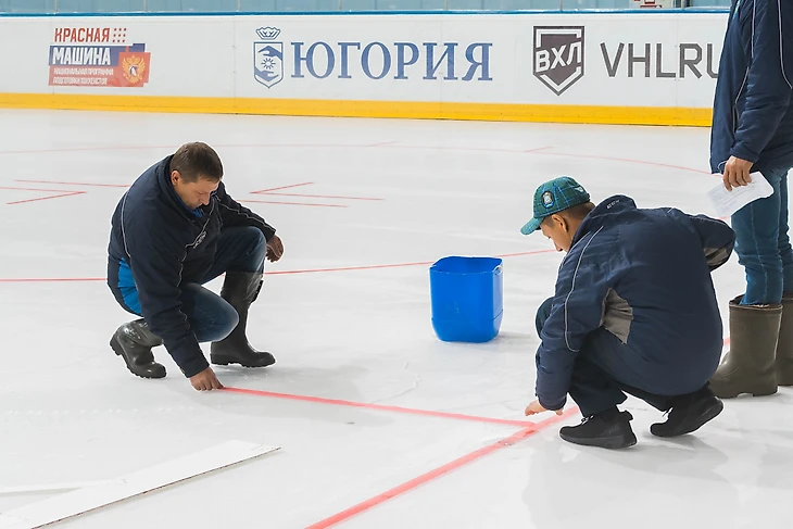 Оператор ледовой машины Андрей Малыхин заливает лед далеко не в первый раз, как отмечает сам специалист, это его одиннадцатый лед. «Ошибок здесь не должно быть, — отмечает мастер. — После того, как площадка будет готова ее проверит комиссия, поэтому мы должны выполнить работу без промашек. Мы свое дело знаем! К процедуре разметки подходим ответственно, ведь здесь будет играть наша хоккейная команда», — улыбается мастер.