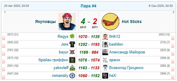 Якуповцы уверенно победили Hot Sticks, котролирую ситуацию, хотя в некоторых парах разрывы были и небольшими. Сохранив хороший запас замен Якуповцы будут иметь потенциальное преимущество в паре с АйсМенами.