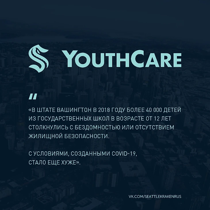 23 июля руководство клуба Сиэтл Кракен объявило название команды, и в этот же день была запущена кампания «Выпускайте Кракена», - брендированные товары котороые фанаты могли бы приобрести онлайн на сайте releasethekrakenstore. Важно отметить, что клуб передал всю чистую выручку с первых 30 дней продаж местной некоммерческой организации YouthCare, чтобы покончить с бездомностью молодежи, наряду с некоммерческими Общественными организациями и Городской лигой митрополита Сиэтла, обслуживающей малообеспеченных чернокожих, коренных и цветных жителей города. Соединение Kraken - YouthCare является частью десятилетнего партнерства стоимостью 10 миллионов долларов, в рамках которого новая команда НХЛ предоставляет организации денежные и натуральные пожертвования. YouthCare обеспечивает такие практические потребности, как питание и кров, наряду с постоянными усилиями по расширению возможностей, обучению и оценке молодежи. Покупка клубной атрибутики на сайте приведет к тому, что бездомные в возрасте от 12 до 24 лет в Сиэтле получат возможность получить образование, карьерные навыки и трудоустройство. Обязательства по чистой выручке будут действовать на первые 30 дней продажи или до 21 августа. «YouthCare была частью нашей организации до ее создания. Президент Мелинда встретилась с Тимом Лейвеке, генеральным директором Oak View Group, создателем Climate Pledge Arena», - сказала Мари Хорита, вице-президент по общественности Сиэтл Кракен. «Мелинда рассказала Тиму, что такое YouthCare, что эта организация помогает молодым людям (от 12 до 24 лет), которые остались без крова, чтобы дать им надежду на светлое будущее. YouthCare оказывает положительное влияние на тихоокеанскую молодежь на протяжении более 40 лет. Организация обслуживает около 1500 человек в год, начиная с размещения молодежи, спящей на улице, и заканчивая организацией питания и подготовкой к работе. «Если молодой человек уходит от нас и никогда больше не возвращается, имеет работу и образование, это то, что мы хотим видеть», - сказала президент и исполнительный директор YouthCare Мелинда Джовенго. «Участие в партнерстве с Сиэтл Кракен дает нашим людям большие возможности». «Здорово иметь финансовую поддержку в течение следующих 10 лет, но самое главное, мы будем частью этой общественной работы, наши молодые люди будут работать и учиться». YouthCare помогает молодой цветной молодежи и молодежи, которые идентифицируются как ЛГБТ. После пандемии организация открыла три приюта работающих 24 часа без выходных в дополнение к двум дюжинам приютов по всему городу. «Это было очень, очень сложно, - сказал Джовенго, - YouthCare пришлось перепроектировать все свои службы по взаимодействию и услуги, чтобы создать 24-часовую систему реагирования, чтобы молодые люди могли вставать по утрам в месте, где можно провести весь день с трехразовым питанием, продолжить обучение и продолжить работу». «В штате Вашингтон в 2018 году более 40 000 детей из государственных школ в возрасте от 12 лет столкнулись с бездомностью или отсутствием жилищной безопасности. С условиями, созданными COVID-19, стало еще хуже». Джовенго подчеркнул, что искоренение бездомности в нашем сообществе для молодежи - это гораздо больше, чем просто дом и еда: «Прекращение бездомности - это то партнерство, которое мы формируем с Сиэтл Кракен, чтобы помочь молодым людям двигаться вперед в будущем». Долгосрочно