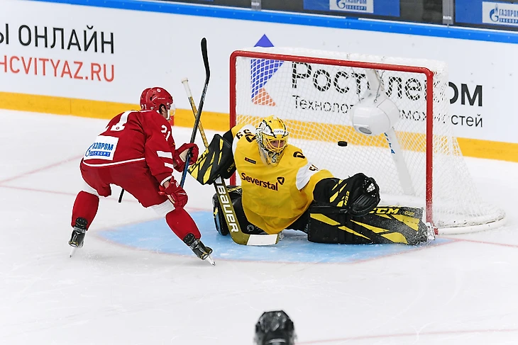 В которой «витязи» и взяли вверх. Варфоломеев и Теденбю переиграли голкипера гостей, а вот хоккеисты «Северстали» все три свои попытки исполнили из рук вон плохо.