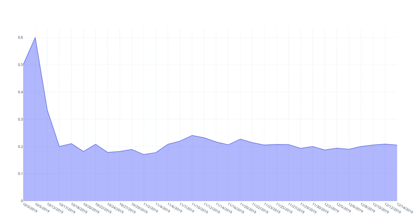 Ниже я создал график движения команды в течении сезона. Горизонтальная ось это даты игр, то есть временная шкала, а вертикальная ось доля очков команды от максимально возможных, при этом я горизонтальную ось поднял на 0.6. Причина этому та, что как правило 98 очков по кончании сезона достаточно чтобы пройти в ПО - а это и есть чуть менее 0.6 набранных очка от возможных 164х. Теперь смотря на график можно видеть не только как набирались очки по ходу сезона, но и то насколько Рейнджерс отставали от графика ПО.
