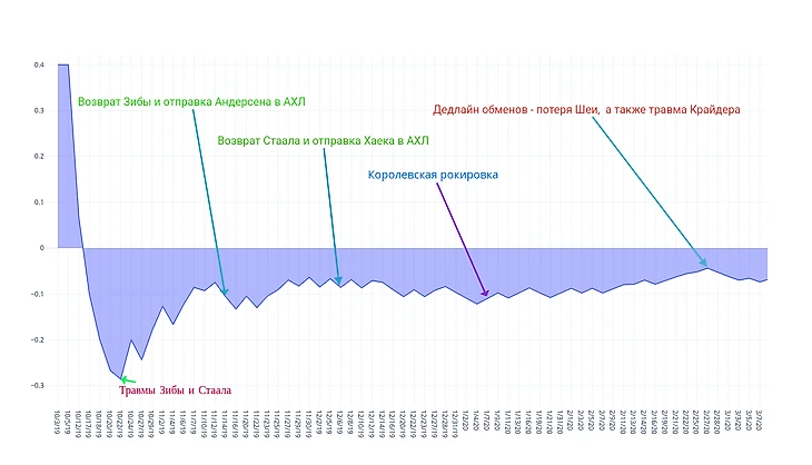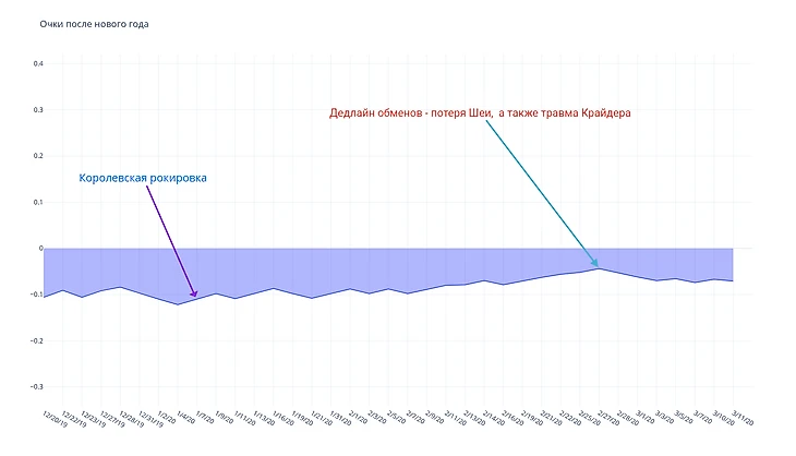 Команда не смогла оправиться от этих травм, уходит в пике и заканчивает сезон с чуть более чем 53% набранных очков от возможных.
