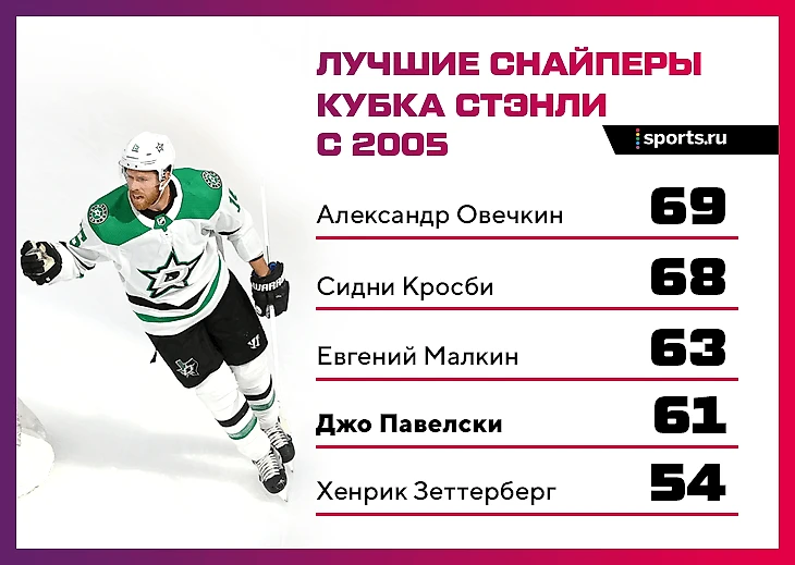 Но собрались мы тут не из-за этого. В ночь на воскресенье Джо забросил свою 61-ю шайбу в плей-офф и вышел на первое место среди американских игроков в истории. Из 5 лучших снайперских американских перформансов в плей-офф Джо оформил 2. При этом гол случился в тот момент, когда хранитель трофея уже доставал тряпочку, чтобы протереть чашу перед вручением, а «Даллас» долгое время бился об оборонительную стену – казалось, что игра для техасских неудержимых уже сделана.