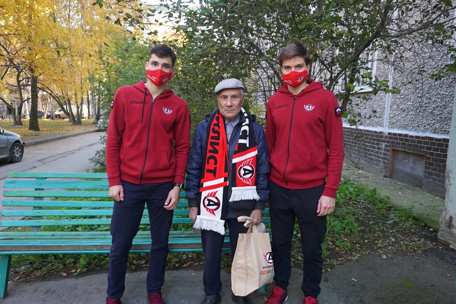 Ещё не заходя в гости, хоккеисты радовали пожилых людей: они звонили в домофон, здоровались и с улыбкой узнавали, как дела. Поднявшись, Илья Лоза вручал пенсионерам набор с продуктами и шарф с логотипом клуба, а Илья Захаров поздравлял с праздником и интересовался их самочувствием. В ответ ветераны рассказывали увлекательные истории из своей жизни: говорили и о хоккее, и о гимнастике, и о домашних питомцах.
