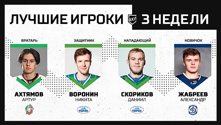 Ахтямов, Воронин, Скориков и Жабреев - лучшие игроки недели в ВХЛ