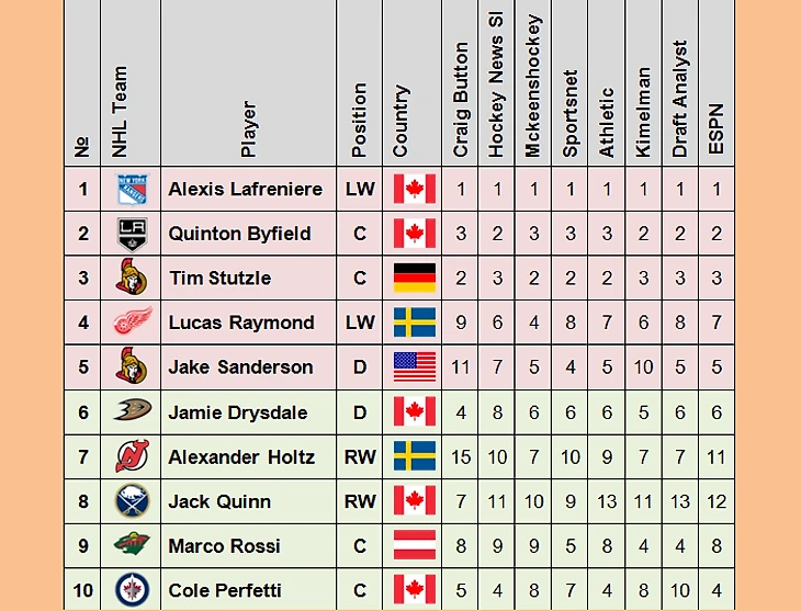 Думаю, основной целью выбора Ottawa под пятым номером был именно Raymond. Первая тройка нападения смотрелась бы очень хорошо. Если это допустить, то Jake Sanderson рассматривался как запасной вариант. Именно он, ведь Rossi и Perfetti были свободны к выбору Senators. Это свидетельствует о том, что Ottawa при выборе №5 они были неинтересны. Удивило Buffalo Sabres выбравшие Jack Quinn, а не Marco Rossi. Следующие два выбора были понятны на основании предыдущих выборов.