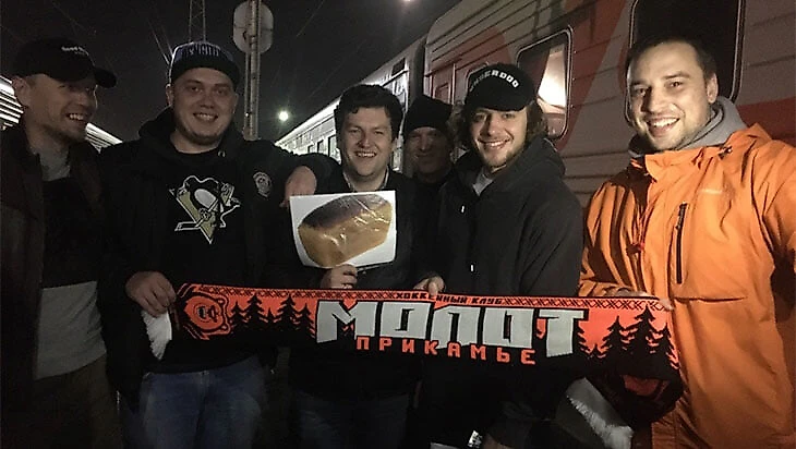 – Мы решили поехать на вокзал после шутки о том, что раз занято всего два купе, можно брать билет на СВ до Екатеринбурга и всю ночь тусоваться с Панариным в одном вагоне. Подарки собирали спонтанно – я взял из домашних запасов шайбу и шарфик «Молота», плюс друзья захватили бутылочку «Пермского бальзама». Не переживали особо из-за подарков, потому что лучше за пару часов сообразить бы не успели, а так получилось от души.