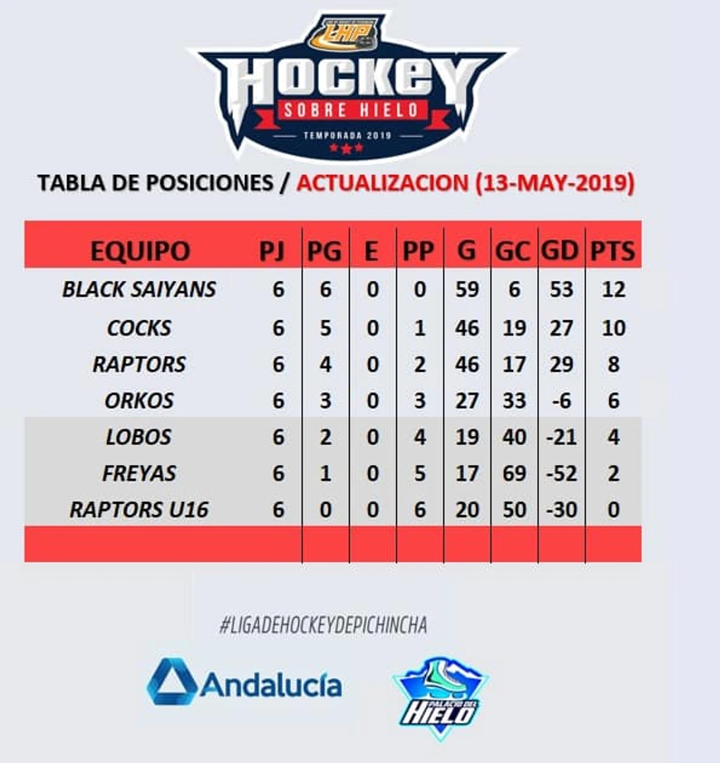 5 апреля 2019 года в городе Кито на льду «Palacio del hielo» стартовал чемпионат Эквадора по хоккею. Игры проходили на маленькой площадке в формате 3 на 3 (три периода по 10 минут). В турнире участвовали 7 команд, которые сыграли по 6 матчей в групповом этапе + игры плей-офф.