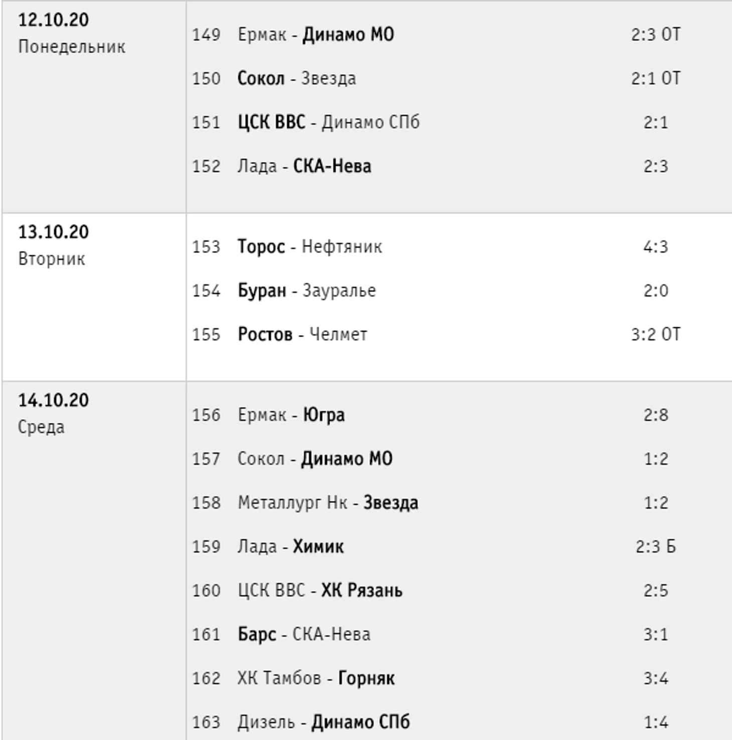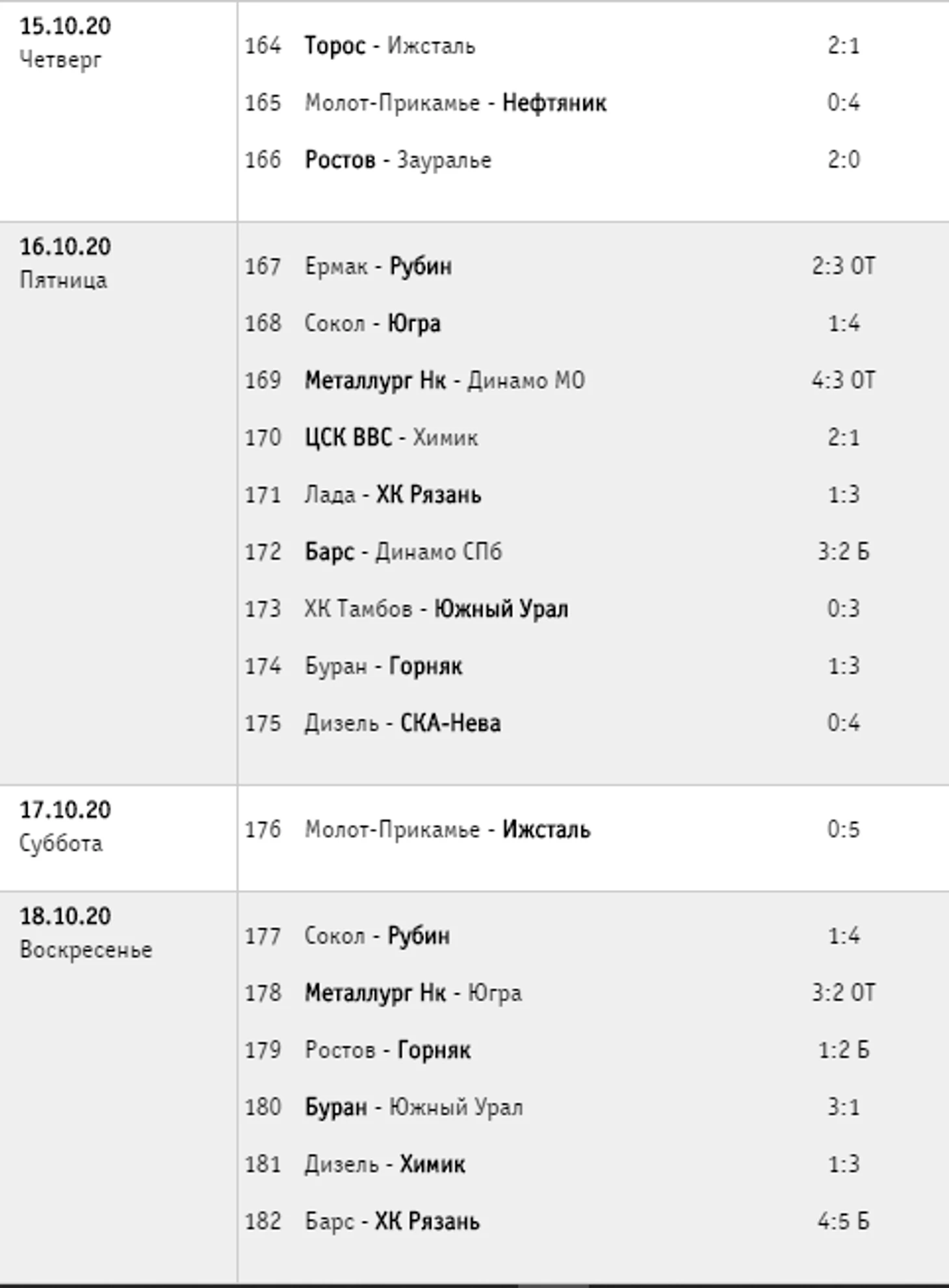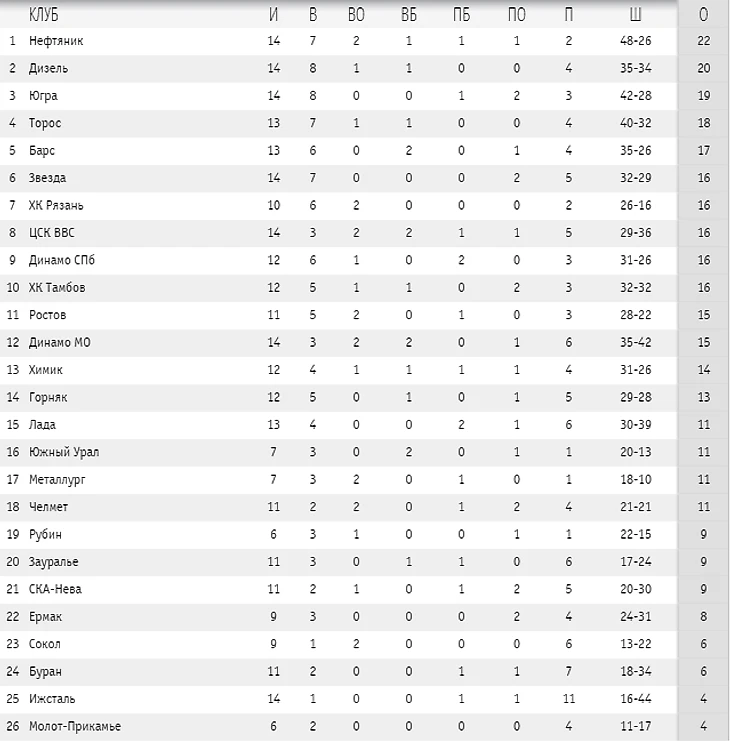 «Ижсталь» наконец-то побеждает. Причём как! В Перми был уничтожен местный «Молот-Прикамье». «Тамбов», победив 4 из 4 в первой домашней серии, во второй довольствовался лишь одной победой в четырёх матчах. «Дизель» тоже дома не блистал, не набрав ни очка в трех матчах. ХК «Рязань» выигрывает в Тольятти и Казани. И по потерянным очкам рязанцы едва ли не лучшая команда лиги. Ну и в поединке между «Кузней» и «Югрой» сильнее оказались хозяева.