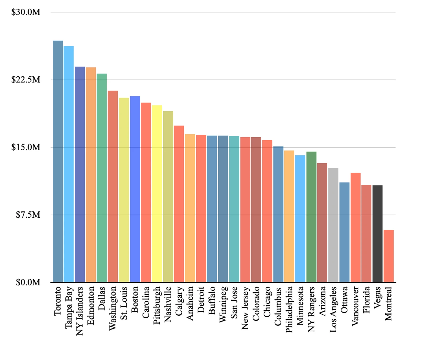 Эти цифры значительно ниже большинства команд лиги, более чем на $6 млн ниже среднего показатели в НХЛ - $17 млн на центров.