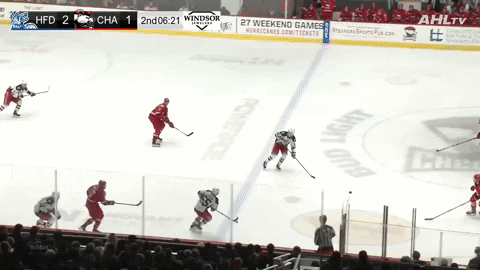 Еще один эпизод из АХЛ – загляделся на шайбу и пропустил силовой прием.