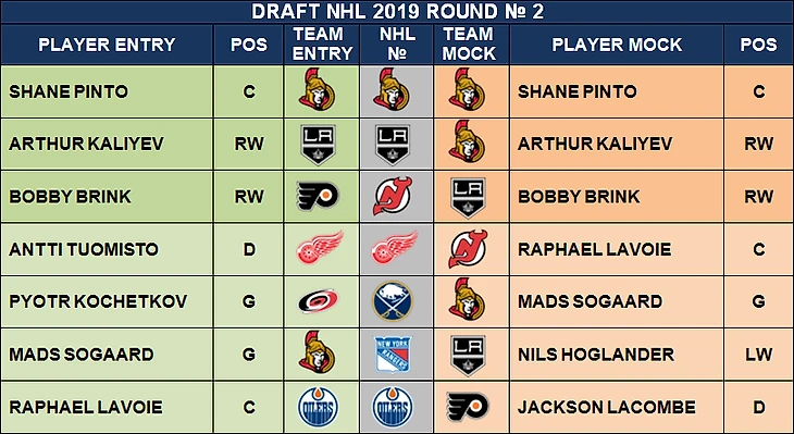 Привожу таблицу с выбором во втором раунде драфта в 2019 году.