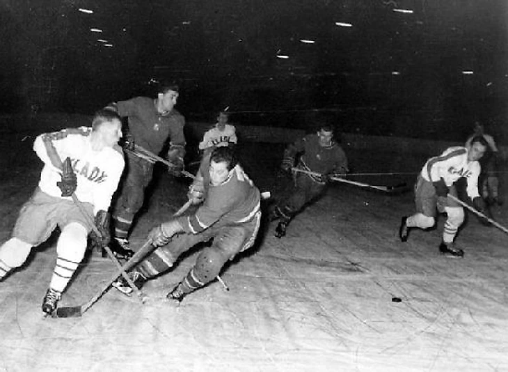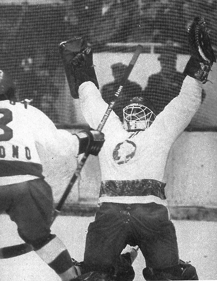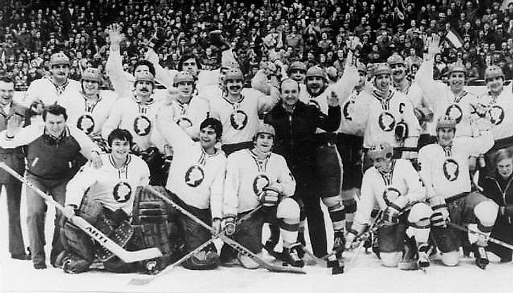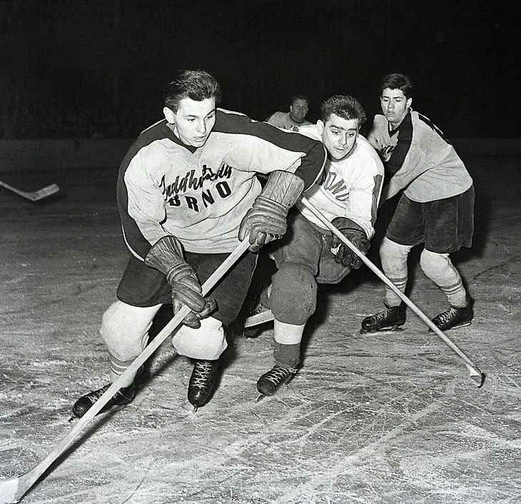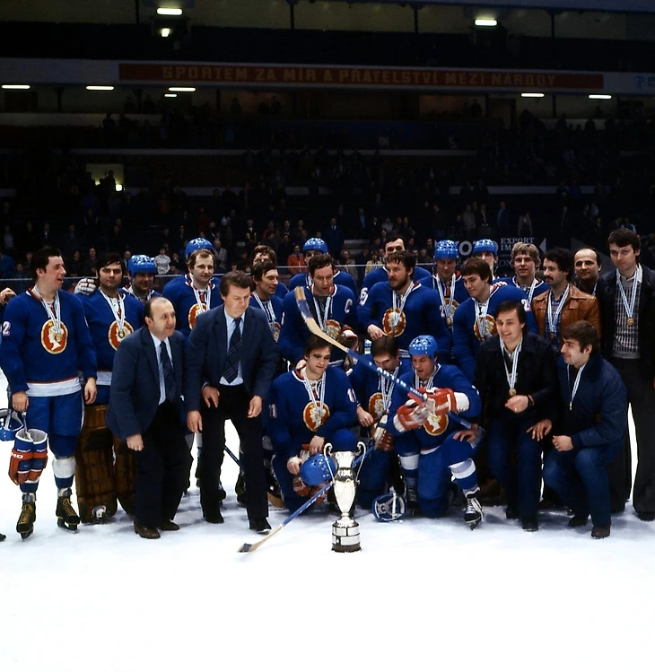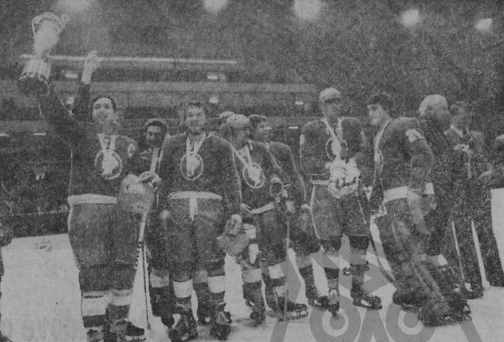 Март 1959 года. Прага. Чемпионат мира и Европы. Отличный маркетинговый ход хозяев: гостем соревнований стал нападающий «Монреаль Канадиенс» и звезда НХЛ Морис Ришар. Он в это время залечивал травму и принял приглашение посетить Прагу и посмотреть матчи лучших любительских сборных команд мира. За спиной великого канадца реклама SONP с пани Польди и плакаты, зовущие на турнир
