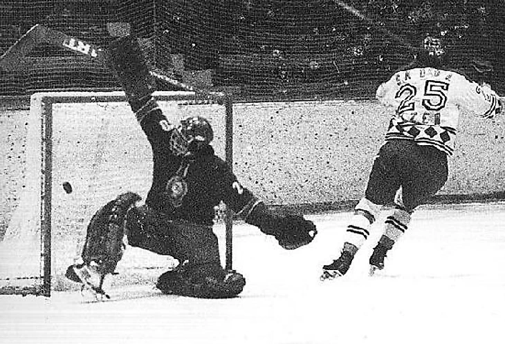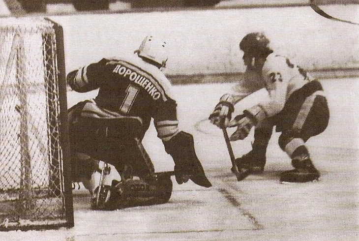 13 февраля 1979 года. Кладно. Кубок европейских чемпионов. «Польди» (Кладно) - «Спартак» (Москва) - 4:4 (по буллитам 2:1). Милану Новы (№ 6) - он открывал буллитную серию - Виктор Дорощенко не позволил забросить, а вот Эдуарду Новаку (№ 7) помешать не смог (1:0)