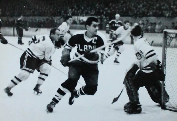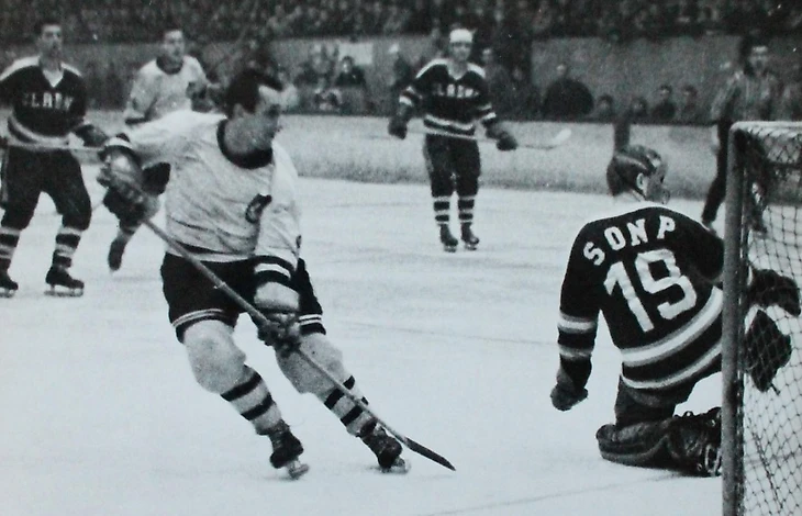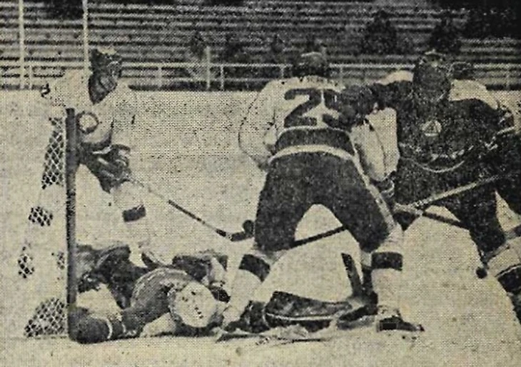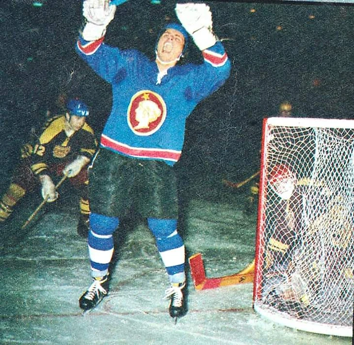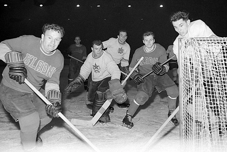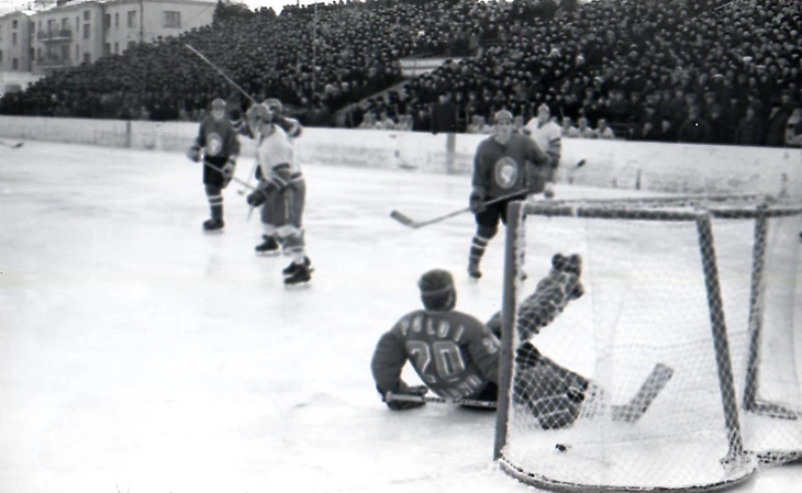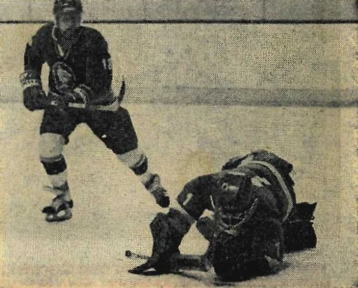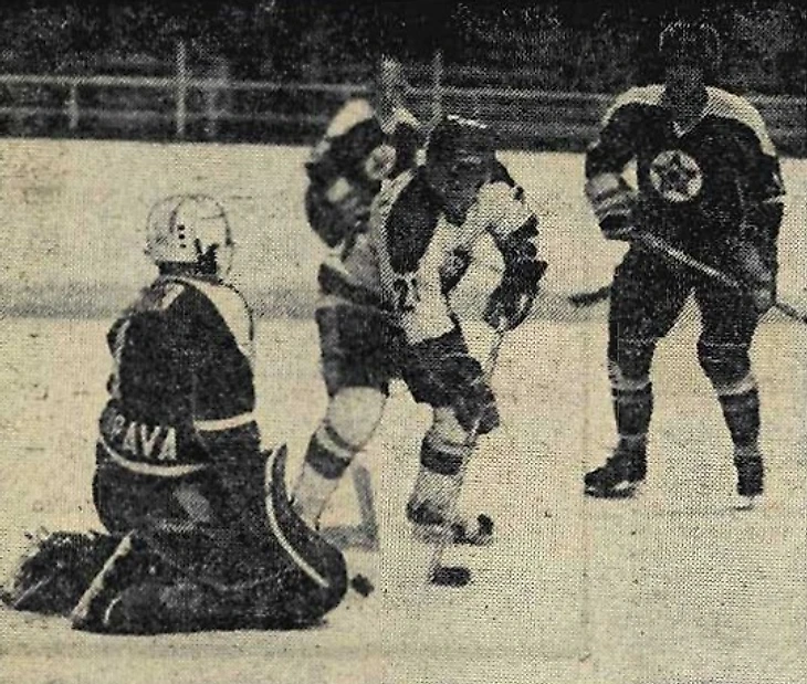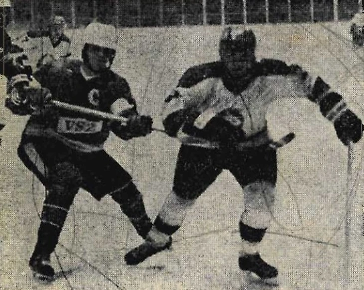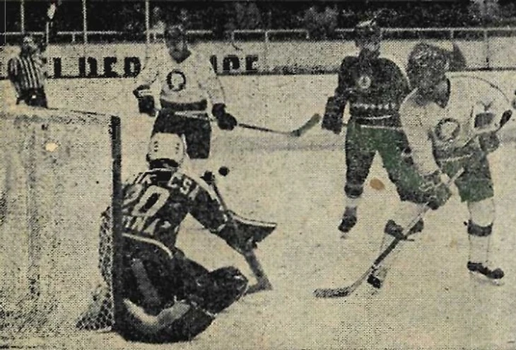 8 ноября 1958 года. Прага. Штванице. СОНП (Кладно) - «Дукла» (Йиглава) - 10:3. В атаке Ярослав Иржик