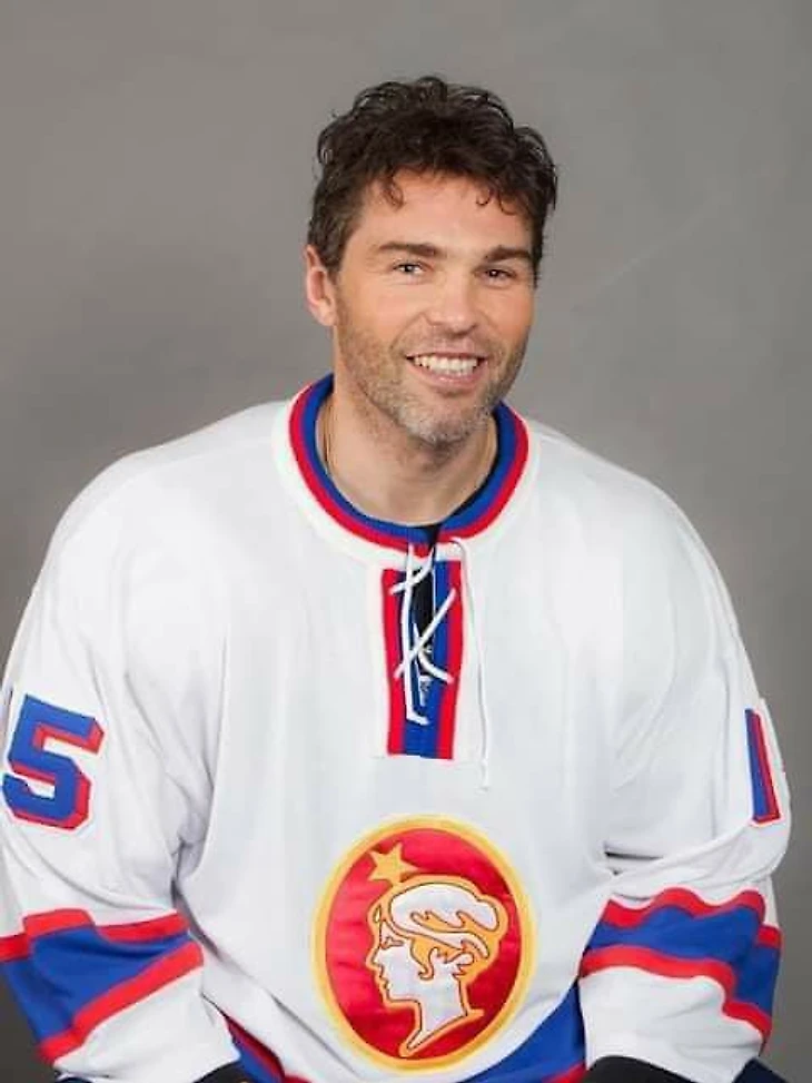 Яромир Ягр (№ 15) в ретро-свитере «Польди» (Кладно). В свитере с № 68 и силуэтом Л. Витгенштейн он проведет только 11 матчей (8 шайб и 14 передач) в локаутном сезоне 1994/95 годов