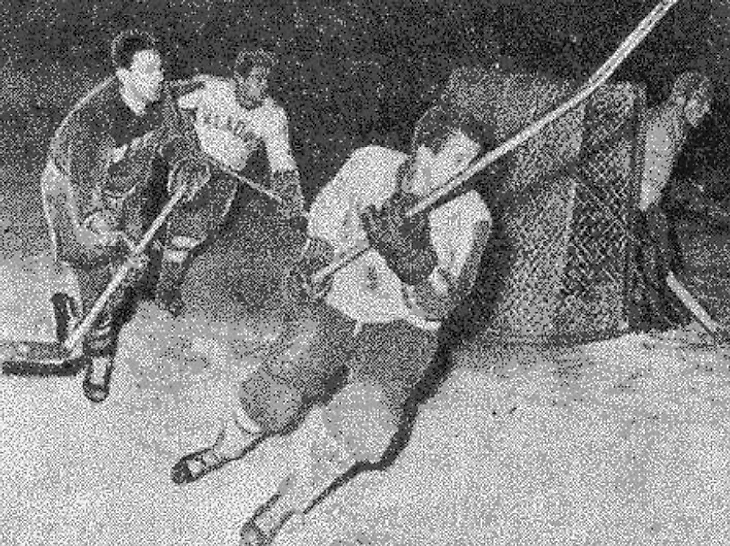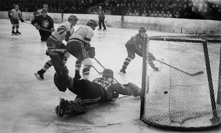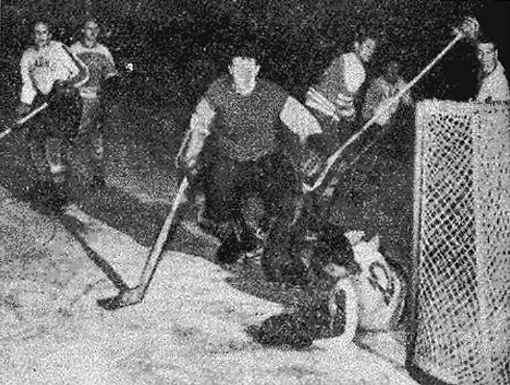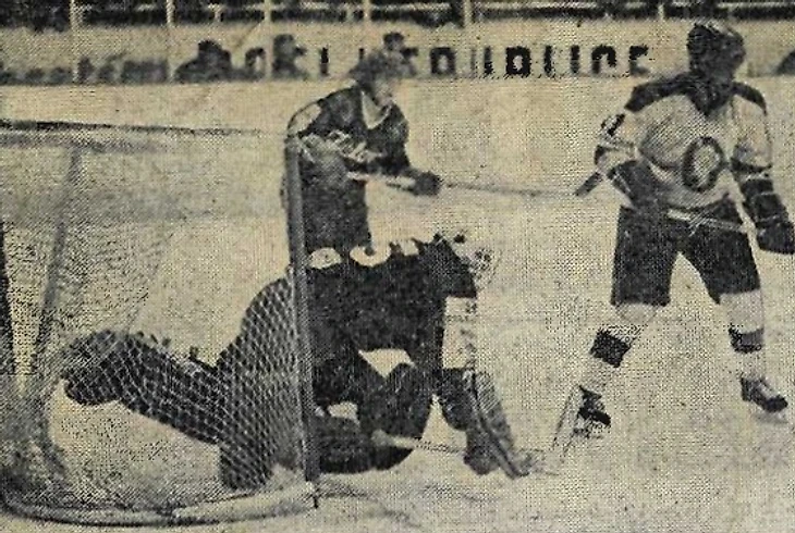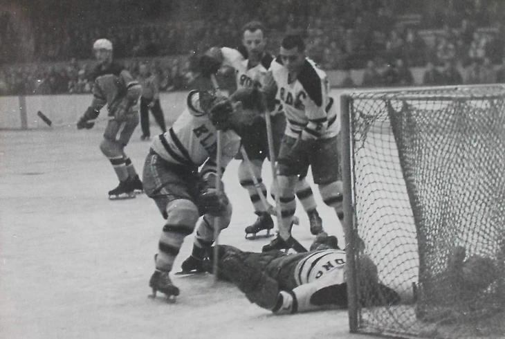 1957/58. «Баник» (Кладно) - «Руда Гвезда» (Брно) - 4:2. Жарко у ворот Иржи Колоуча