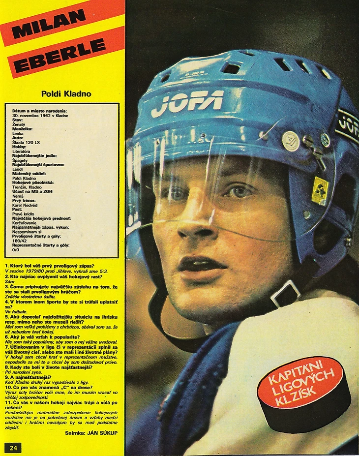 26 января 1982 года. «Польди» (Кладно) - «Тесла» (Пардубице) - 4:3. Арношт Рекцигль (№ 16)