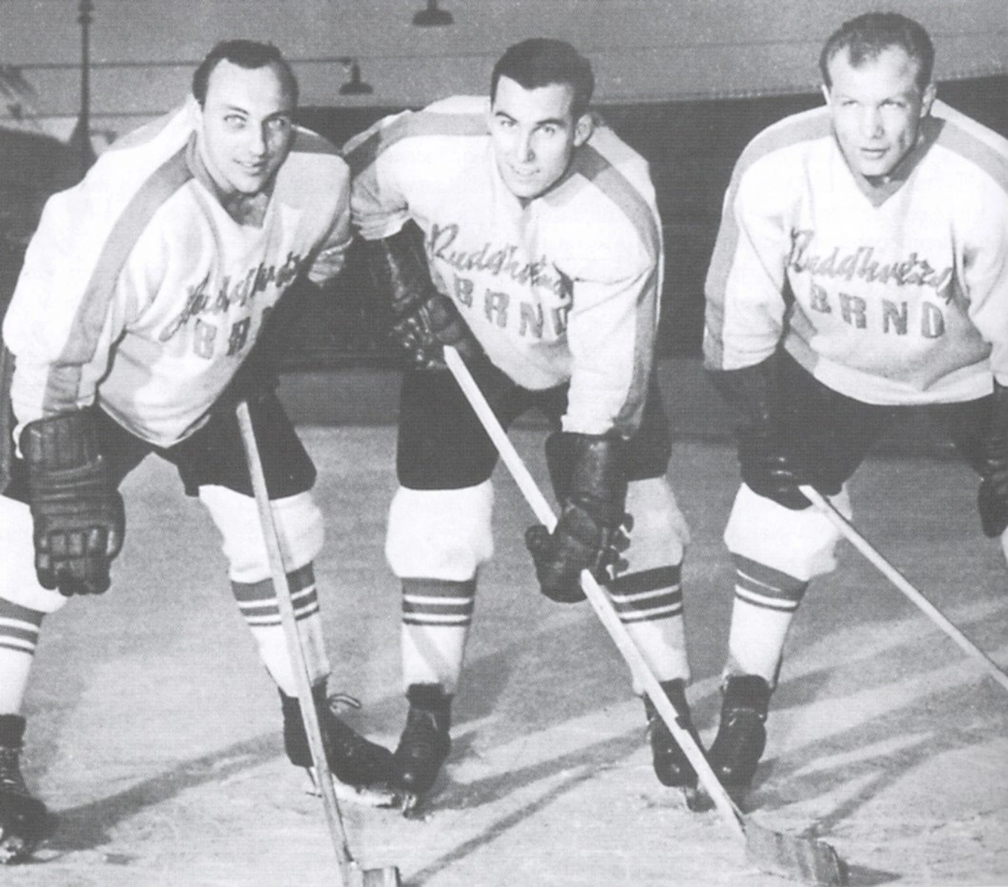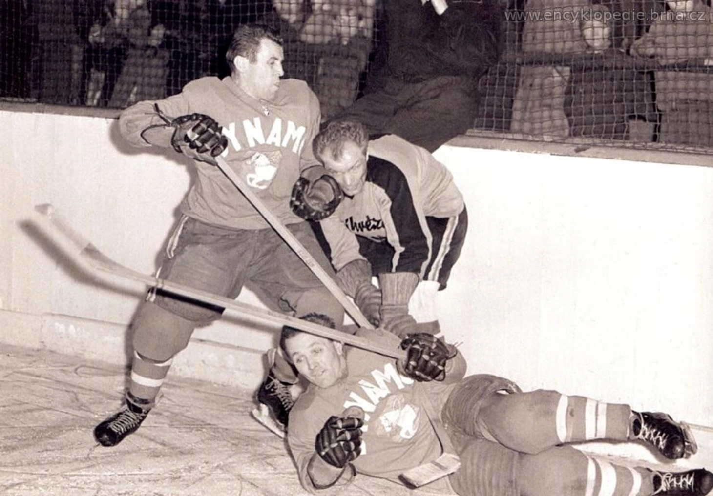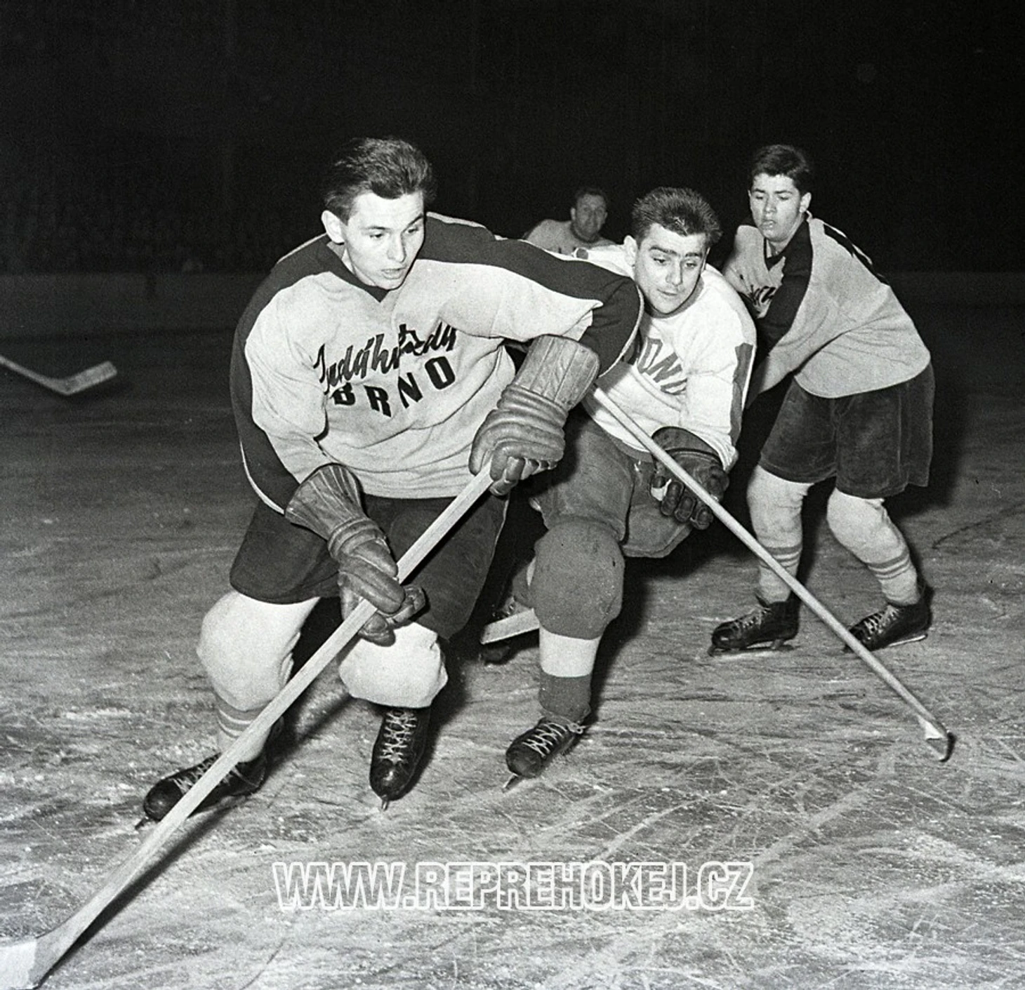 1953/54. «Руда гвезда» (Брно). Две главные звезды команды: Властимил Бубник и Бронислав Данда (справа Зденек Наврат). В центре их тройки играл Славомир Бартонь (в 1956 году его сменит Вацлав Пантучек)