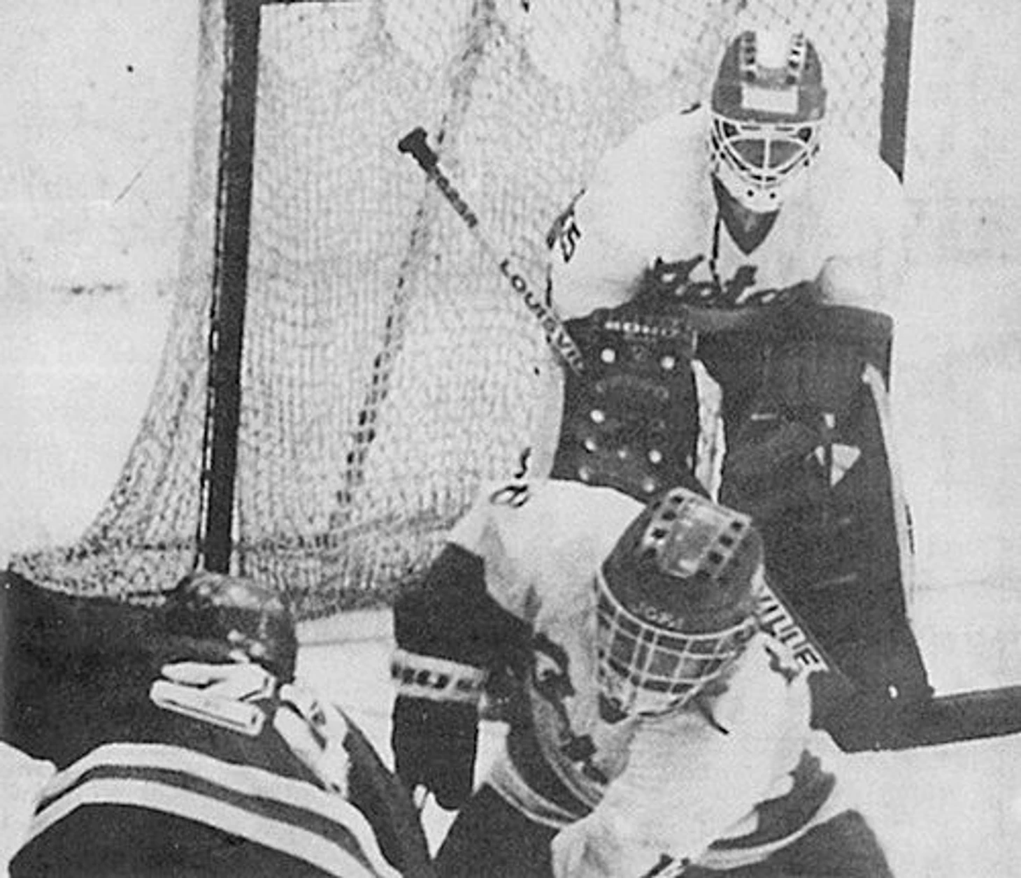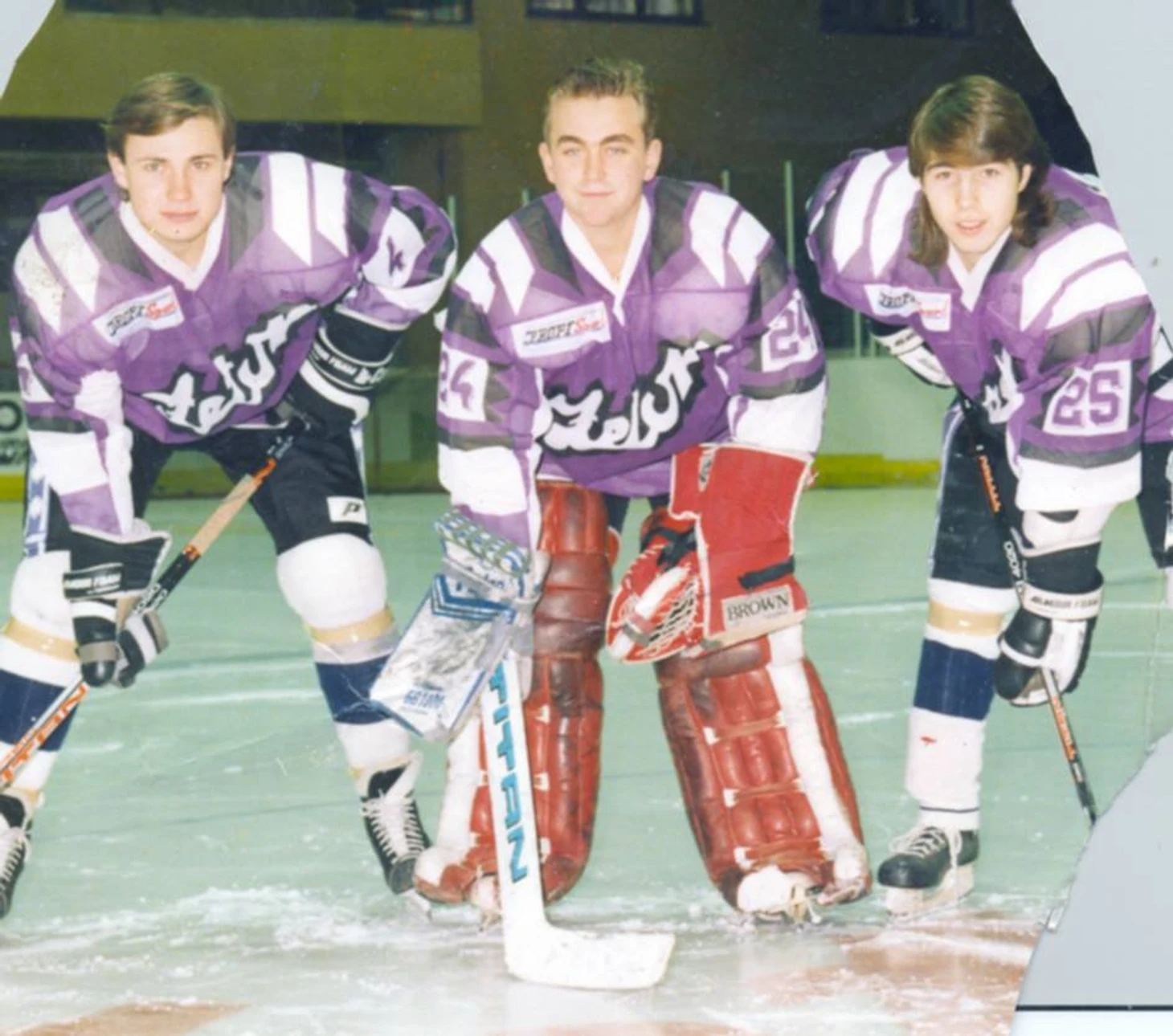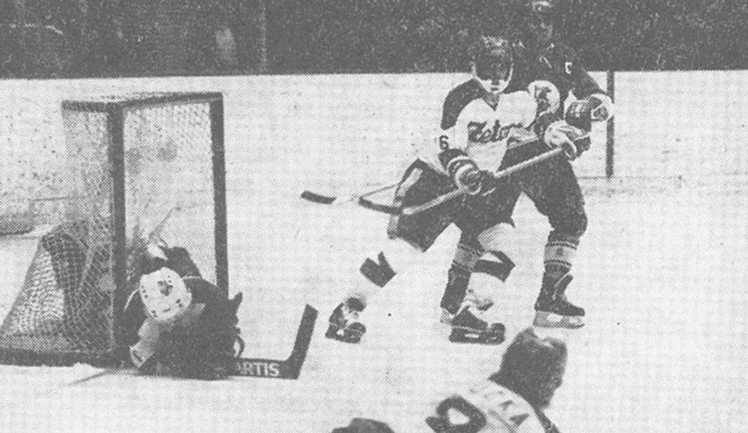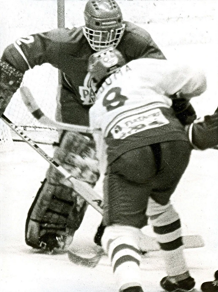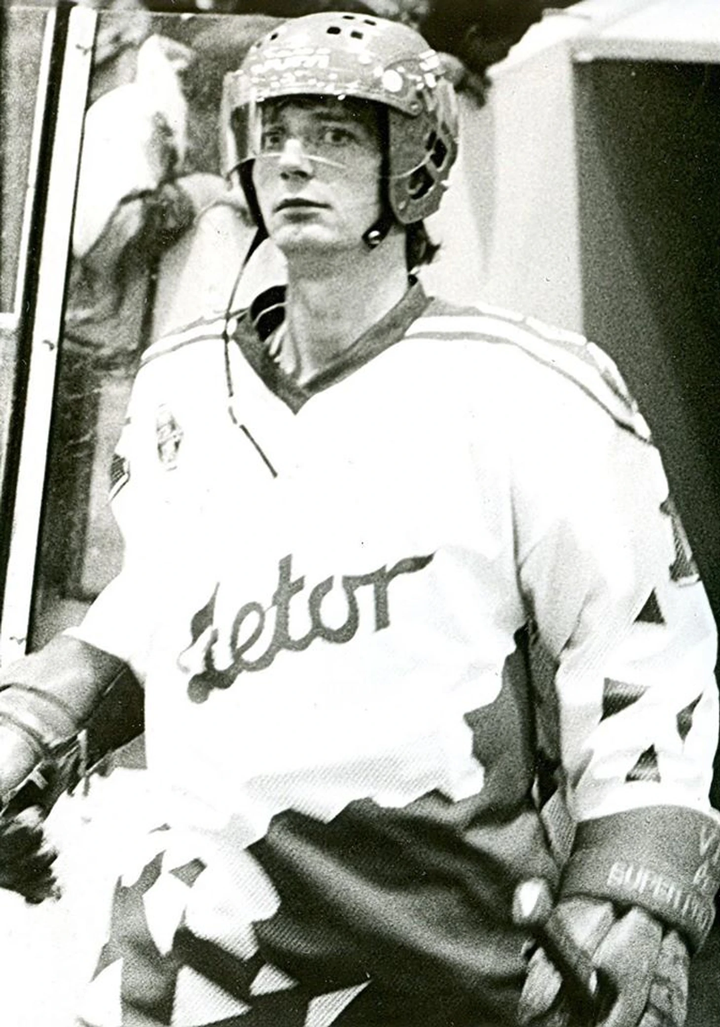 25 января 1987 года. «Польди» (Кладно) - «Локомотив-Ингстав» (Брно) - 5:2. Голкипер гостей Либор Спурны против Мартина Кутхана (№ 14) и Милана Новы (№ 6)