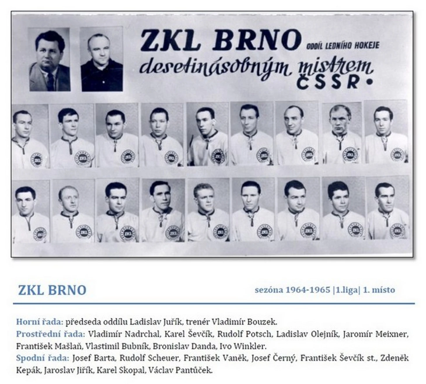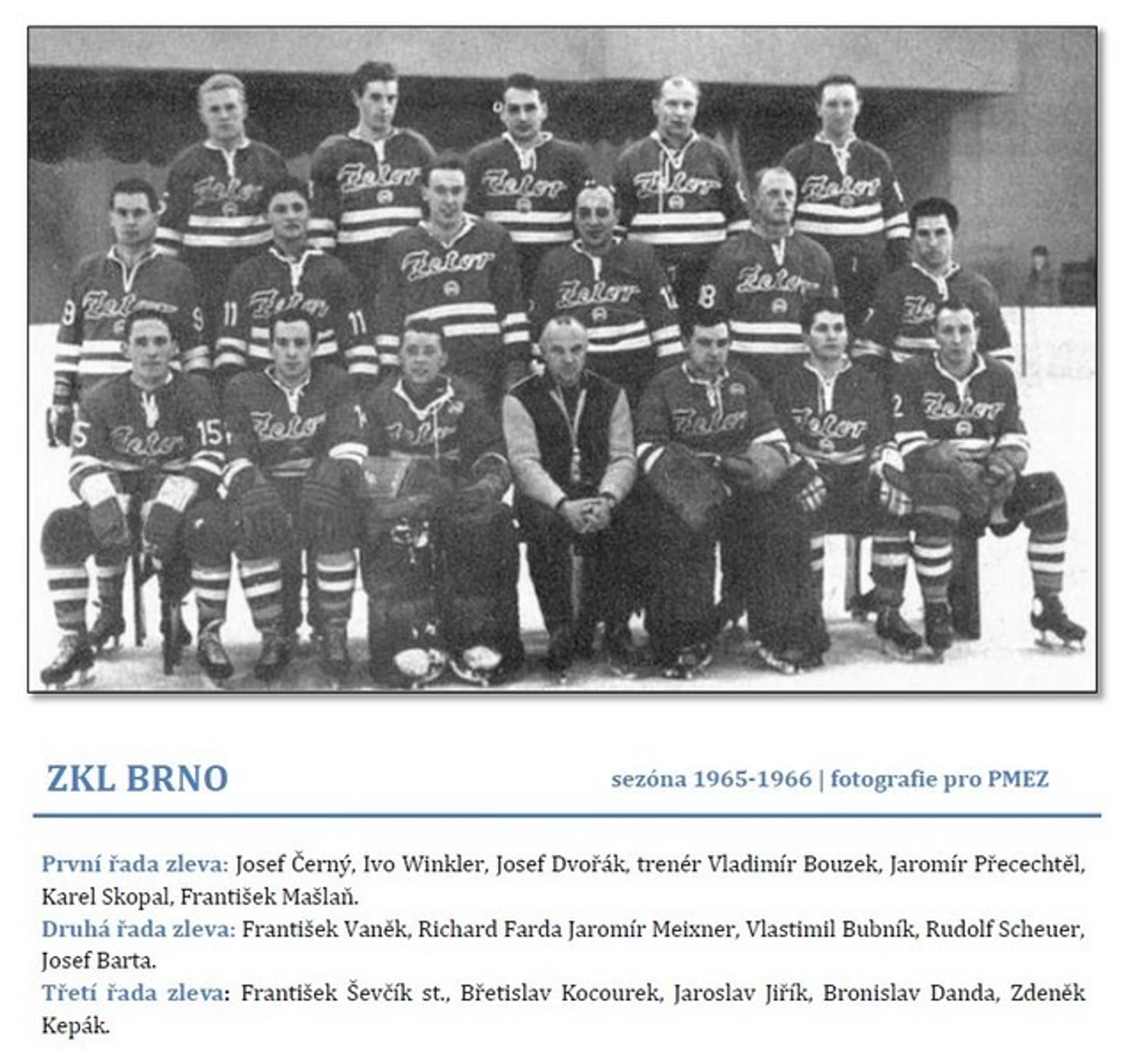 Середина 1940-х. «Горацка Славия» (Тршебич). Слева - Карел Полак, справа - Ладислав Пейчар, в центре - Владимир Бузек: двукратный чемпион мира (1947 и 1949 годов), чемпион Чехословакии в составе ВЖКГ из Остравы (1951/52); играл за команды из Брно: «Сокол Збройовка Жиденице» (1948/49) и «Спартак Кралово Поле» (1953/54 - 1954/55), в последствии (с середины сезона 1954/55) многолетний старший тренер «Руда гвезды»/ЗКЛ