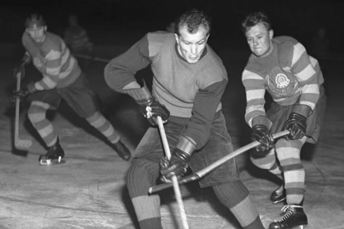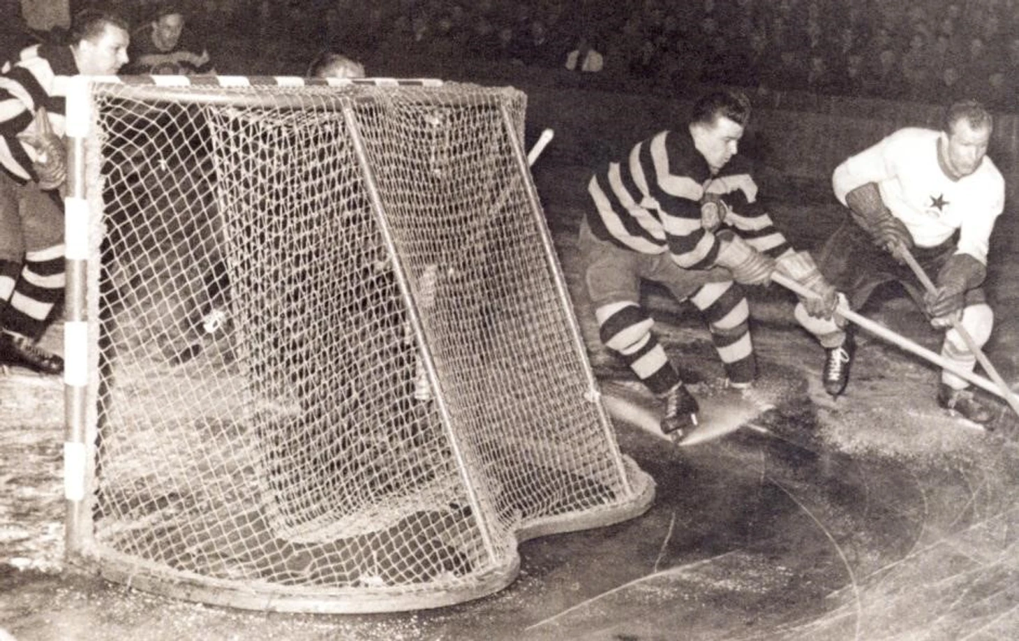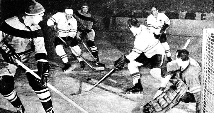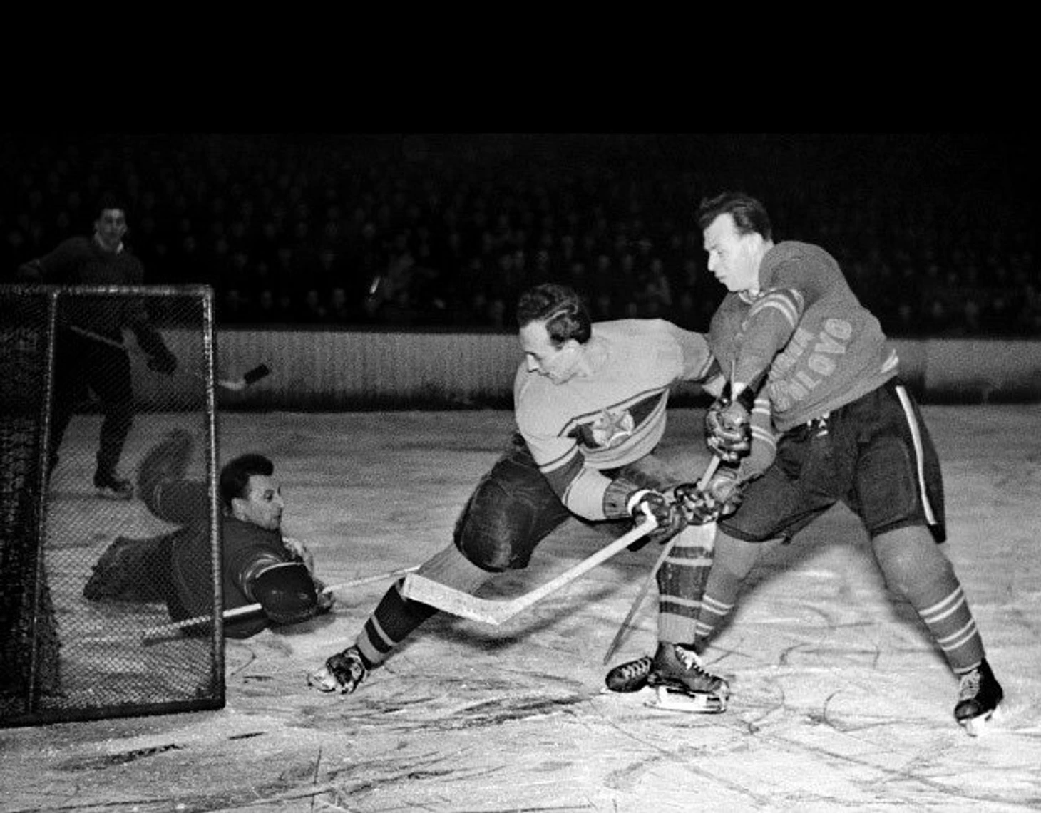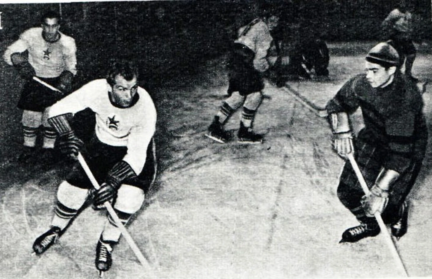 23 октября 1957 года. «Крылья Советов» (Москва) - «Руда гвезда» (Брно) - 9:2. Встреча чемпионов-1956/57 двух стран (фото В. Гребнева)
