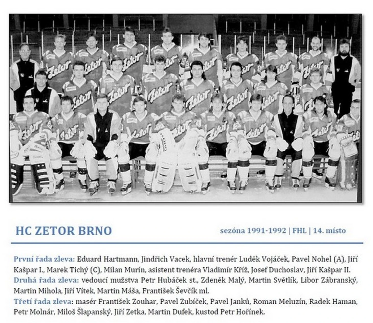 Пятидесятый юбилейный чемпионат (и как потом оказалось последний) общей лиги для чешских (богемских и моравских) и словацких команд прошедший под названием Федеральная хоккейная лига «Зетор» провел во втором дивизионе. В его ходе ХК был переименован в ХК «Краловопольска» (это название стало свободным, так как физкультурное подразделение (TJ) «Краловопольского мешиностроительного завода» с таким названием развалилось в 1990 году, а взять название «Брно» «Зетор» не успел - так было бы логичней - его уже занял другой менее именитый клуб, имевший опять большие амбиции и корни как раз в Краловом Поле). Скорее всего, и одноименный завод, и внешнеторговая компания «Мотоков» прекратили принимать участие в финансировании команды и это привело к смене имени, а, возможно, и к созданию нового юрлица. А вот цвета, изменившееся в прошлом сезоне, сохранились и пришлись очень кстати, так фиолетовый считается королевским. У многих народов фиолетовый (в геральдической литературе его синонимами являются пурпурный, бордовый, лиловый, лилово-синий, лилово-красный, темно-синий, огненно-красный) связан с монархией и властью. Еще в Древнем Египте и Древнем Риме пурпур был признаком особого богатства и высокого положения в обществе. Связано это с тем, что пурпур - природный краситель, добываемый из желез нескольких видов моллюсков, обитающих в Средиземном море и относящихся к семейству багрянок. При чем разные виды этого животного при обработке дают свой оттенок, а различия в технологии производства увеличивают палитру этих оттенков. Каждая особь этого хищного моллюска вырабатывают небольшое количество красителя, который используется ей как снотворное для своей добычи. Чтобы получить один грамм красителя пурпурного цвета, требовалось собрать и обработать более девяти тысяч моллюсков. В следствие этого ткань, окрашенная в пурпурный цвет, была буквально на вес золота.