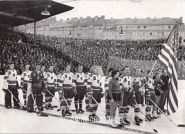 5 марта 1959 года. Брно. Национальный стадион имени Эдварда Бенеша. Чемпионат мира и Европы. Группа В. США - Норвегия - 10:3