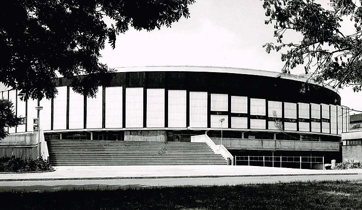 Еще несколько фото с ЧМ-59 (кроме того, здесь в 1986 году проходили игры группы «С» - с участием команд Кубы (серебро по итогам всего турнира), Перу (бронза), Бразилии и ФРГ - на первом этапе ЧМ по волейболу среди женщин). В Брно соревновались хоккейные сборные команды группы «В»: СССР, США, ГДР и Норвегии. К слову, этот чемпионат еще раз выявил недостатки открытого зимнего стадиона - сложность обслуживания ледовой поверхности во время снегопада или при повышении температуры, загрязнение золой от близлежащих промышленных предприятий, а также низкий комфорт зрителей в плохую погоду. И через несколько месяцев был утвержден проект перекрытия арены, сделанный все тем же Богумилом Фиалой с использованием металлоконструкций, разработанных на Витковицком металлургическом комбинате.