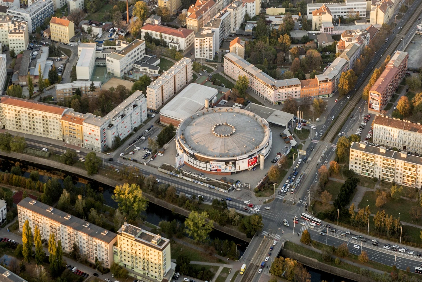 Считается, что одной из главных причин создания самой успешной брненской команды - «Руда гвезда» - явилось наличие в городе Зимнего стадиона (архитектор Богумил Фиала; после общественного обсуждения проекта, изменения в него вносил архитектор Вацлав Роштлапил), имевшего одну особенность, опередившую время - наличие сразу двух хоккейный площадок с искусственным льдом. Рядом с основным катком был тренировочный. Композиционно ледяные поверхности были расположены в форме буквы «Т». Их разделало здание, в которым также были и общественные зоны, включавшие в себя ресторан с большими окнами, которые позволяли наблюдать за происходящим на двух коробках. Арена на 12 000 зрителей, ставшая самой крупной в Чехословакии, и названная в честь тогдашнего президента страны Э. Бенеша (после войны он снова возглавил Чехословакию), Benešův národní stadion или по-русски Национальный стадион имени Эдварда Бенеша, была открыта 19 января 1947 года. К этому времени в распоряжении спортсменов Чехословакии искусственный лед был на Зимнем стадионе пражского остров Штванице (всестимость 8 000 мест; открытие по временной схеме 17 января 1931 года; торжественное открытие 6 ноября 1932 года; холодильное оборудование спроектировано и изготовлено Первым Брненским машиностроительным заводом), Зимнем стадионе на Телегельном поле в Братиславе (300 мест; строительные работы завершены 14 декабря 1940 года; холодильное оборудование, предназначавшееся изначально для стадиона в Катовице (Польша), тоже сделано на Первом Брненском машиностроительном заводе; после реконструкции 1948-49 годов вместимость увеличилась до 11 000 мест) и Зимнем стадионе в Ческе-Будеёвице (первая игра 27 октября 1946 года). История хоккейного стадиона в Брно началась в тридцатых годах прошлого столетия. Именно тогда было выбрано место для него - около самого большого городского парка Лужанки, первоначально называвшегося Аугартен (это соседства повлияет потом на неофициальное название стадиона - «За Лужанками»). Но из-за нехватки финансов, а затем Второй мировой войны стройка стартовала только в 1946 году.
