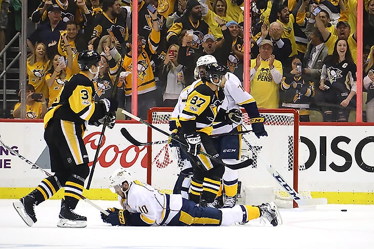 Во втором матче финала Кубка Стэнли «Нэшвилл» пропустил две шайбы за 15 секунд – обе в результате выхода 2-в-1. В четвертом матче серии «Хищники» позволили великому Сидни Кросби дважды убежать 1-в-0. Один из этих выходов Кросби реализовал. Учитывая, что «Хищники» успешно не допускали такие выпады бóльшую часть плей-офф, невольно задаешься вопросом – что же тут стряслось? Хоть инстинкт в первую очередь хочет свалить вину на оборону, на самом деле, как оказалось, позиционную ошибку совершили нападающие.