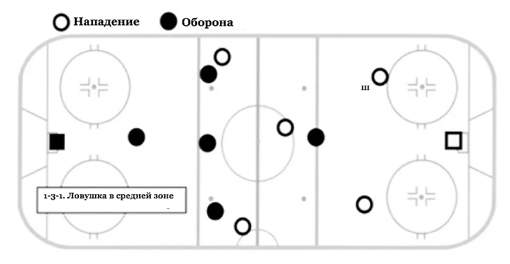 Если атакующая команда попытается объехать «тройку» в схеме 1-3-1, то оборона может выбить шайбу и организовать контратаку – возможно, с серьезным численным перевесом.