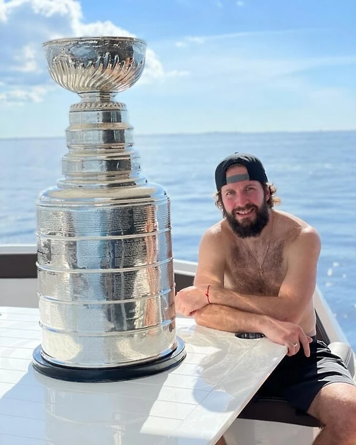 Никита Кучеров продолжает отмечать победу в Кубке Стэнли (все ведь помнят, как он обнимал чашку и в раздевалке, и на официальном чествовании чемпионов?). Отдохнув в России, он снова вернулся в Америку к чашке – и выложил целую серию фотографий с трофеем (а были еще и сторис), что совершенно нетипично для его трехлетнего аккаунта с 79 постами.