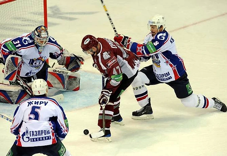 Тот СКА ещё не был тем, который мы знаем сейчас. Не было Романа Ротенберга, не было большущих денег. В дебютном сезоне КХЛ "армейцы с Невы" заняли лишь 8-е место и уже в первом раунде уступили "Спартаку" 0:3. Но в сезоне 2009/2010 СКА серьёзно усилился. К Роберту Эшу, Раймону Жиру, Андрею Зюзину, Максиму Сушинскому, Нильсу Экману, Сергею Брылину, Константину Горовикову, Игорю Мисько присоединились Максим Соколов, Сергей Зубов, Джоэл Квятковски, Олег Сапрыкин, Петр Чаянек, Юрий Трубачёв и Алексей Яшин. Не команда, а настоящая россыпь звёзд. На их фоне даже лучшая команда Латвии смотрелась блекло. И все в один голос заявляли: СКА - фаворит и уверенно победит в трёх матчах.