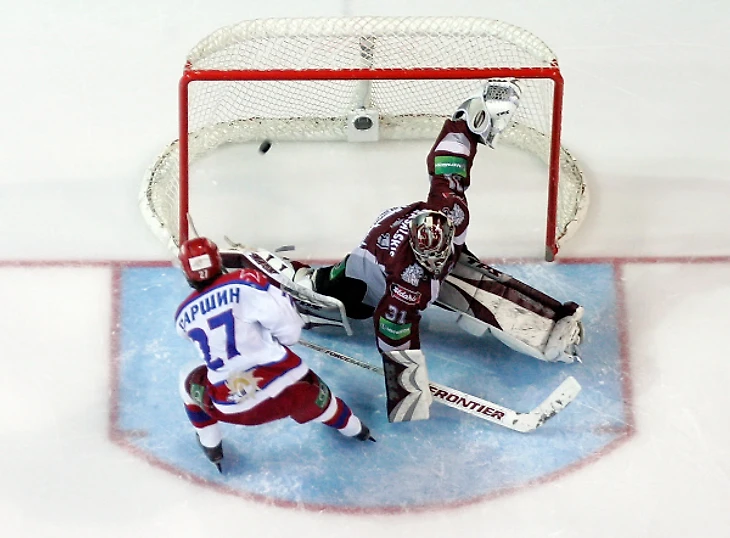 Через два дня, 26 января, "Динамо" вышло на лёд в Череповце. После первого периода хозяева уверенно ведут 3:0. Но то был вечер команды из столицы Латвии. Дубль оформил Марцел Хосса, а Майк Иггулден с передачи словацкого форварда перевёл игру в овертайм на предпоследней минуте третьего периода. Победу для "Динамо" принёс точный бросок Лауриса Дарзиньша в послематчевой серии. Пройдёт 10 лет, а его броски будут всё так же неуловимы для голкиперов.