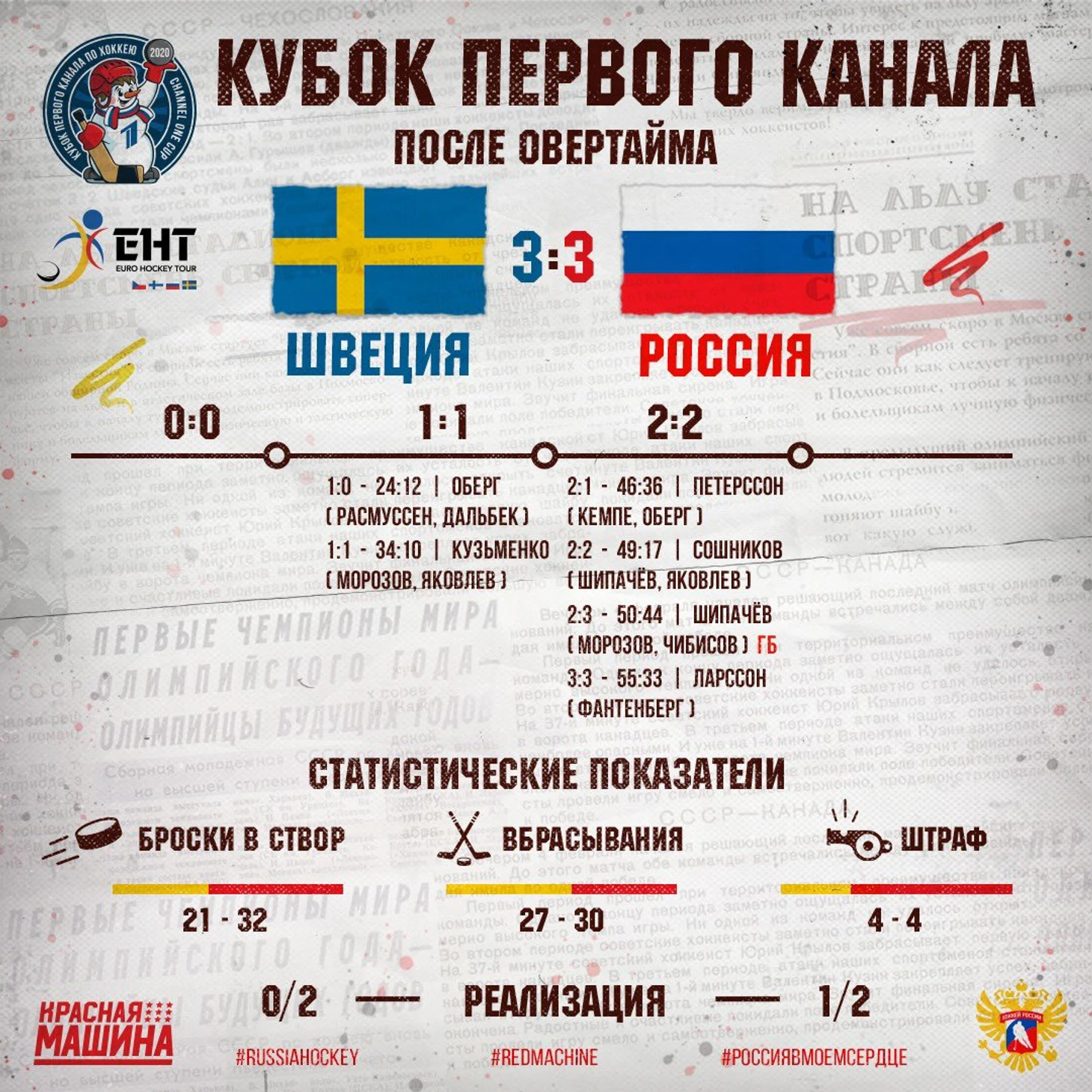 20:30 Шведы открыли счет: рикошет от Оберга – и 0:1. Но времени отыграться предостаточно!