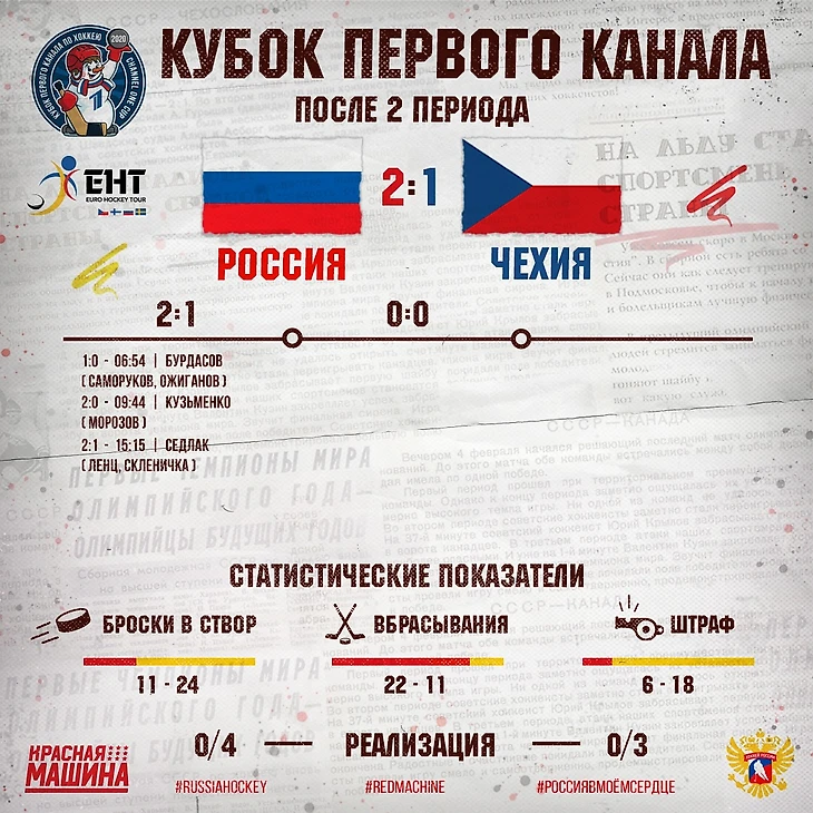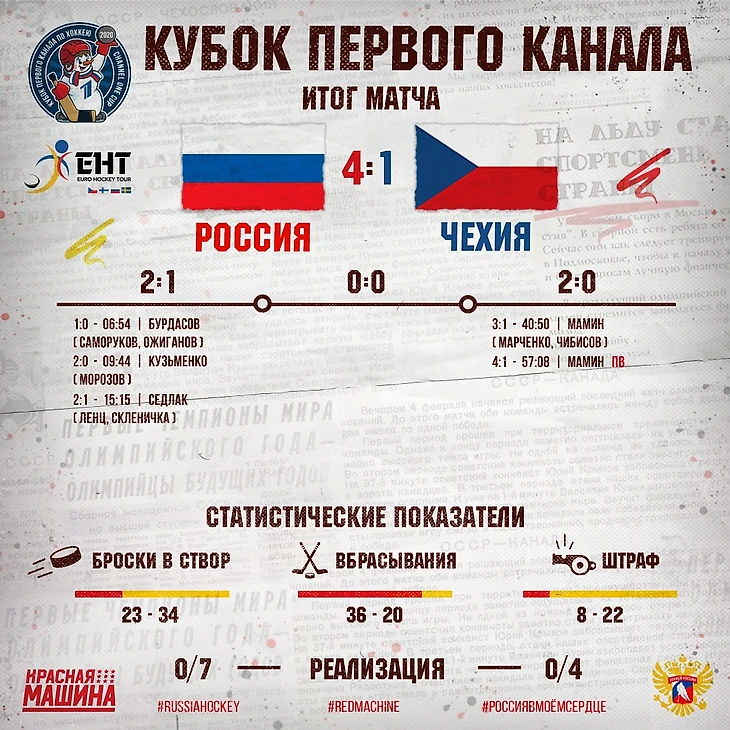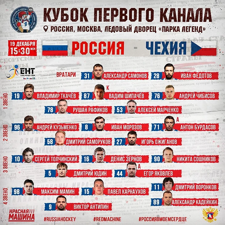17:45 Сборная России обыгрывает чехов – 4:1! Перед решающим днем мы лидеры Кубка Первого канала!