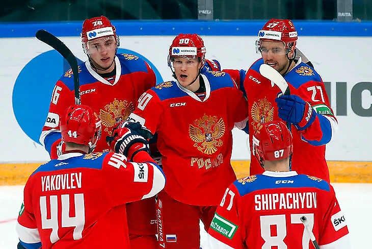 14:15 Состав сборной России на матч. Изменения: Дмитрий Саморуков во второй паре вместо Данилы Галенюка. Виктор Антипин в составе, а Никиты Лямкина нет. В нападении появился Сергей Толчинский – в третьей тройке вместо Егора Коршкова.