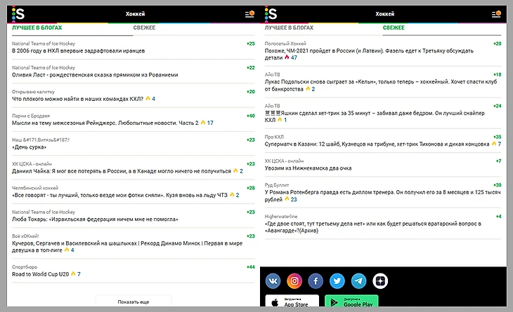 Основной путь для читателей увидеть мою вышедшею статью окно блогов СВЕЖЕЕ на странице НХЛ. Сказать, что оно работает через попу значит, ничего не сказать, с каждым днём всё хуже и хуже. Постоянно пропадают статьи из окна блогов, сейчас вообще пропала ссылка показать ещё в окне свежее (видно из правой части картинки с окном блогов выше). Само окно периодически видно только на мобильной версии сайта, а не с компьютера. Это отражается на статистике просмотров статьи. У последней этот показатель около четырёх раз меньше предпоследней с которой проблемы были только периодически. Поскольку это происходит часто, отбивается желание писать статьи, которые мало кто увидит.