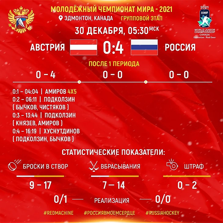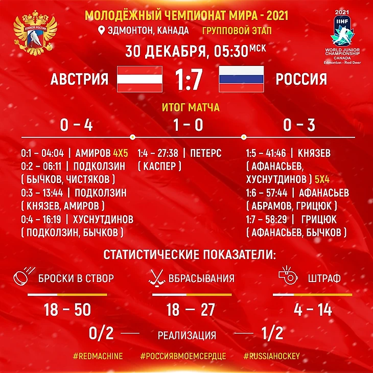 Россия вынесла Австрию на МЧМ-2021 – 7:1. Все голы матча – тут