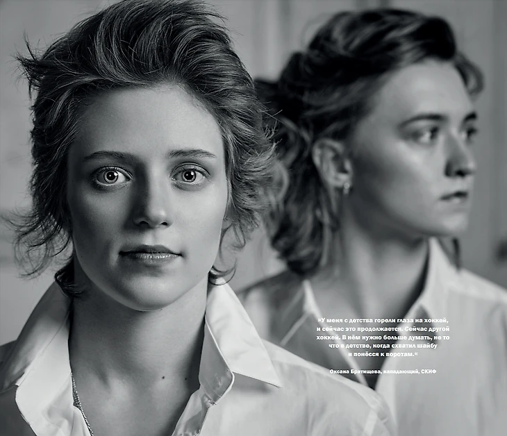 Авторы решили делать для календаря простые портреты в черно-белом цвете с небольшой цитатой хоккеистки о том, как она видит хоккей и какой видит себя в этом спорте.