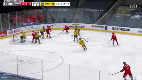 Как раз поэтому мне кажется важным четко показать, как играла сборная России на этом МЧМ и в чем были идеи Ларионова – несмотря на неудачу, именно этот хоккей выглядит похожим на тот, к которому нас постоянно отсылают штампы типа «советский хоккей»; он выглядит похожим на тот, что мы раньше видели только на гифках про Русскую пятерку – например, на этой: