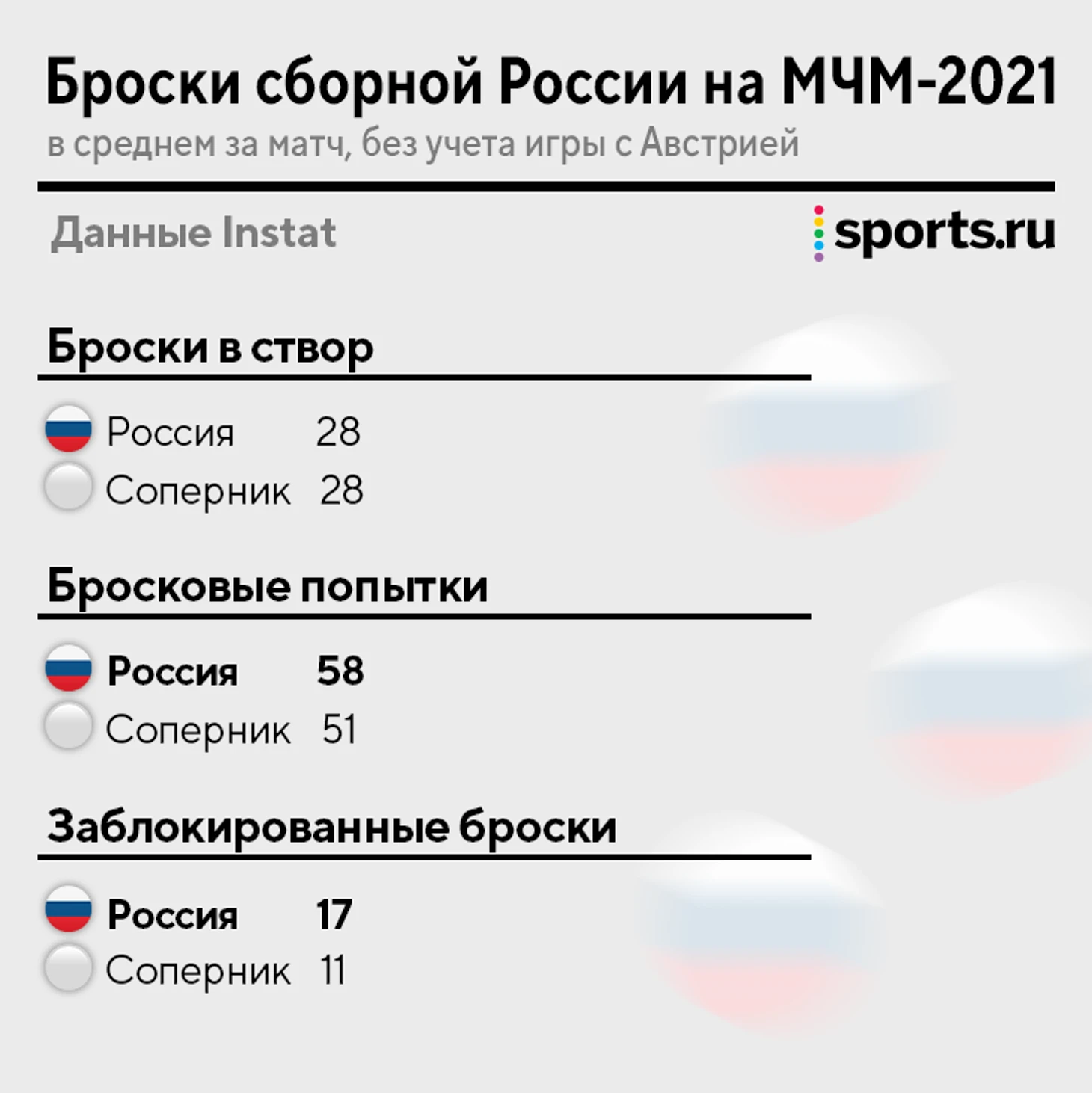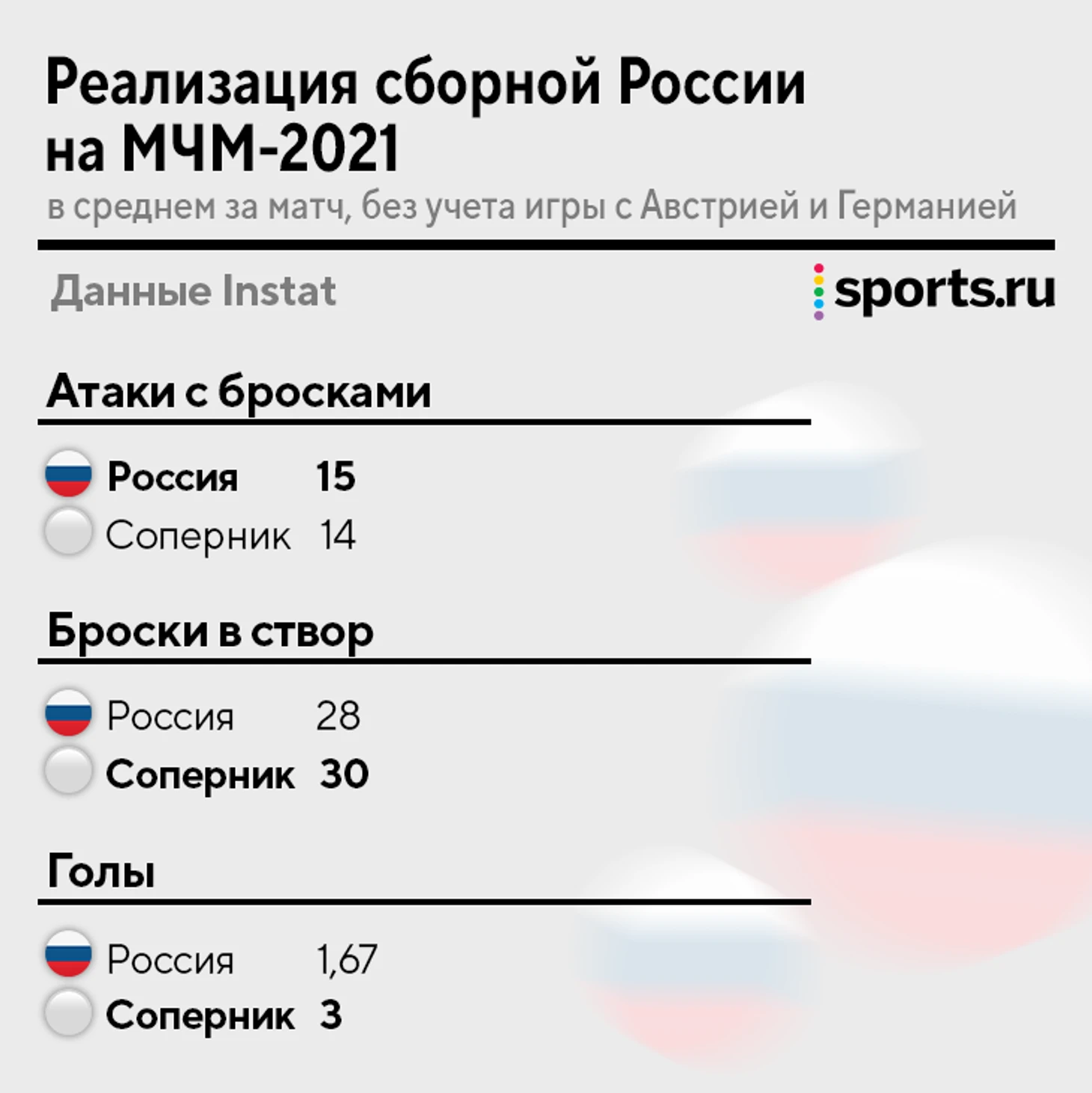 Все наши проблемы на МЧМ-2021 – в зоне атаки. Мы бросали достаточное количество раз. По факту мы атаковали достаточное количество раз – в матчах с топ-командами (минус игры с Австрией и Германией, плюс товарняк с Канадой) мы проводили в среднем 15 атак с бросками, допуская по 14 таких атак у соперника.