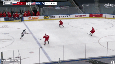 В какой-то момент группового этапа сборная России контролировала 70% своих входов в чужую зону – то есть, переходила на вброс только в 3 случаях из 10. А после 7-го дня турнира Артемий Князев был вторым в списке лидеров по контролируемым (то есть, с шайбой на крюке) выходам из зоны.