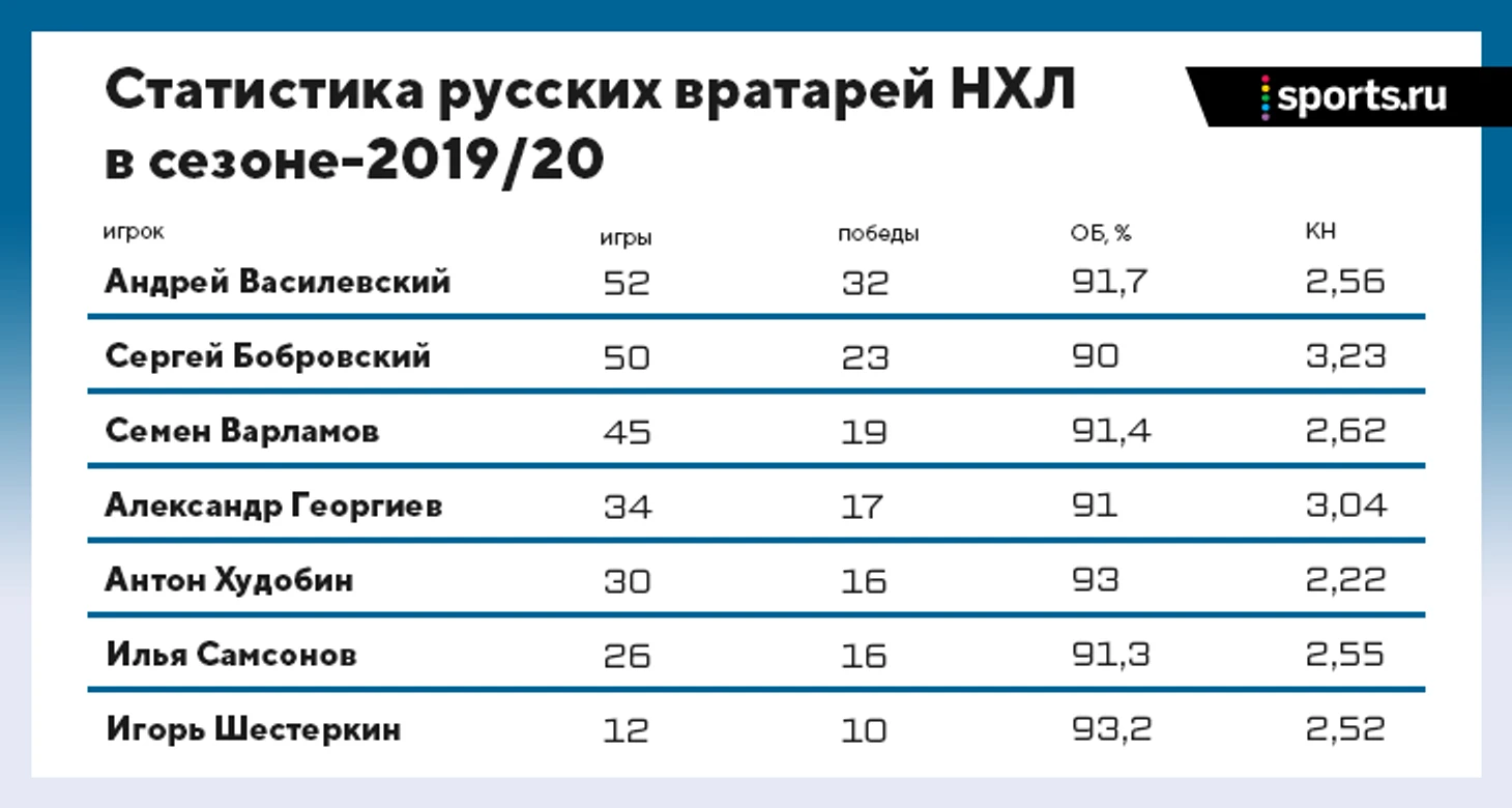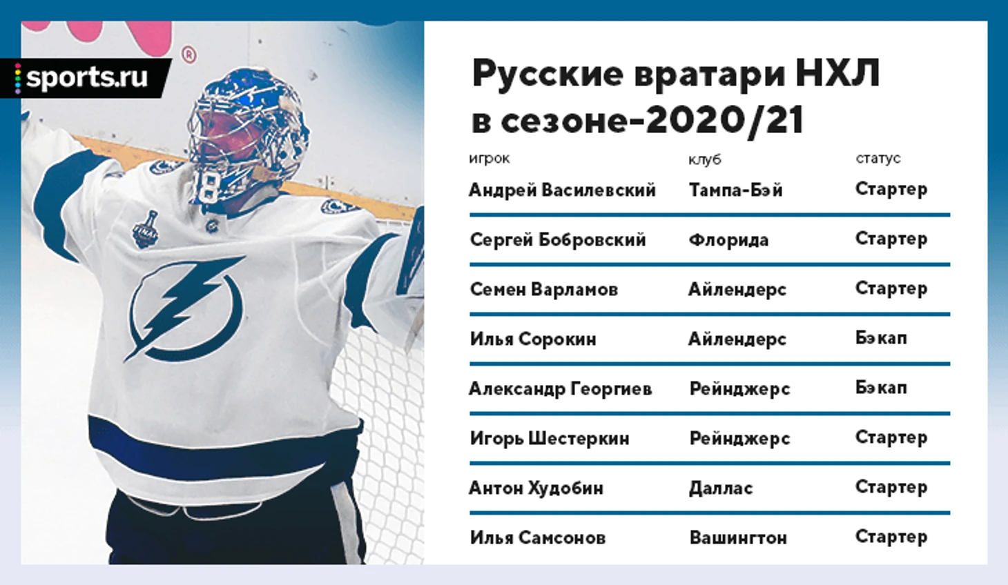 Сезон-2020/21 должен стать для наших вратарей особенным – тем более, почти у всех была очень приличная статистика в прошлом году. Да, Бобровский провалился в новой системе, но сложно поверить, что голкипер такого уровня выдаст два кошмарных сезона подряд.